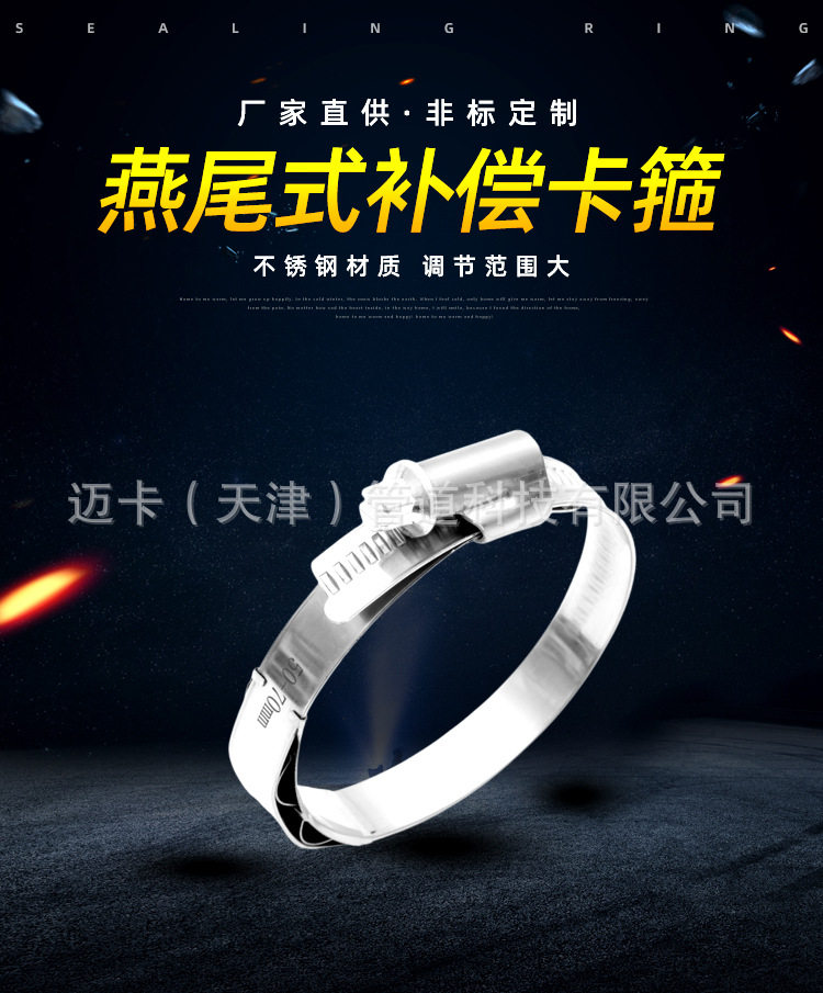 HOSE CLAMP跨境外贸德式偏头卡箍燕尾式补偿卡箍带补偿器铆接结构