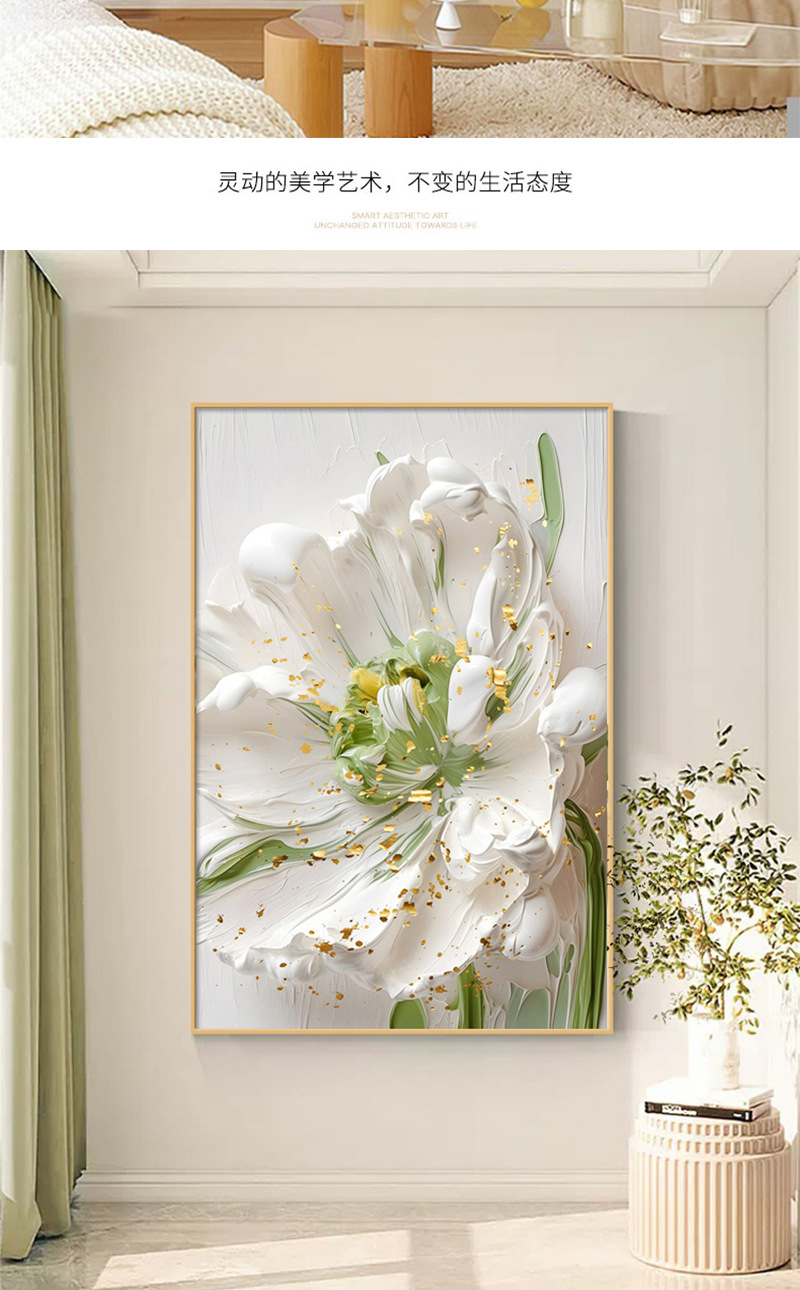奶油风花卉客厅装饰画小清新玄关壁画简约大幅沙发背景墙落地挂画