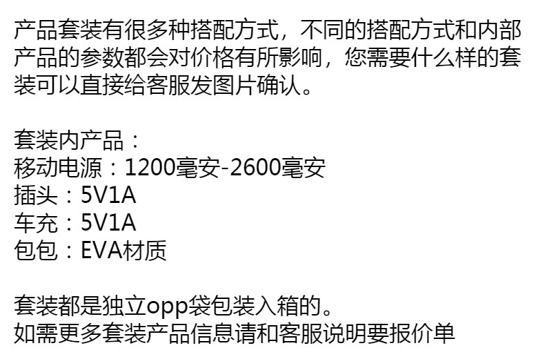 迷你移动电源套装 充电器套装 充电线套装 插头充电器