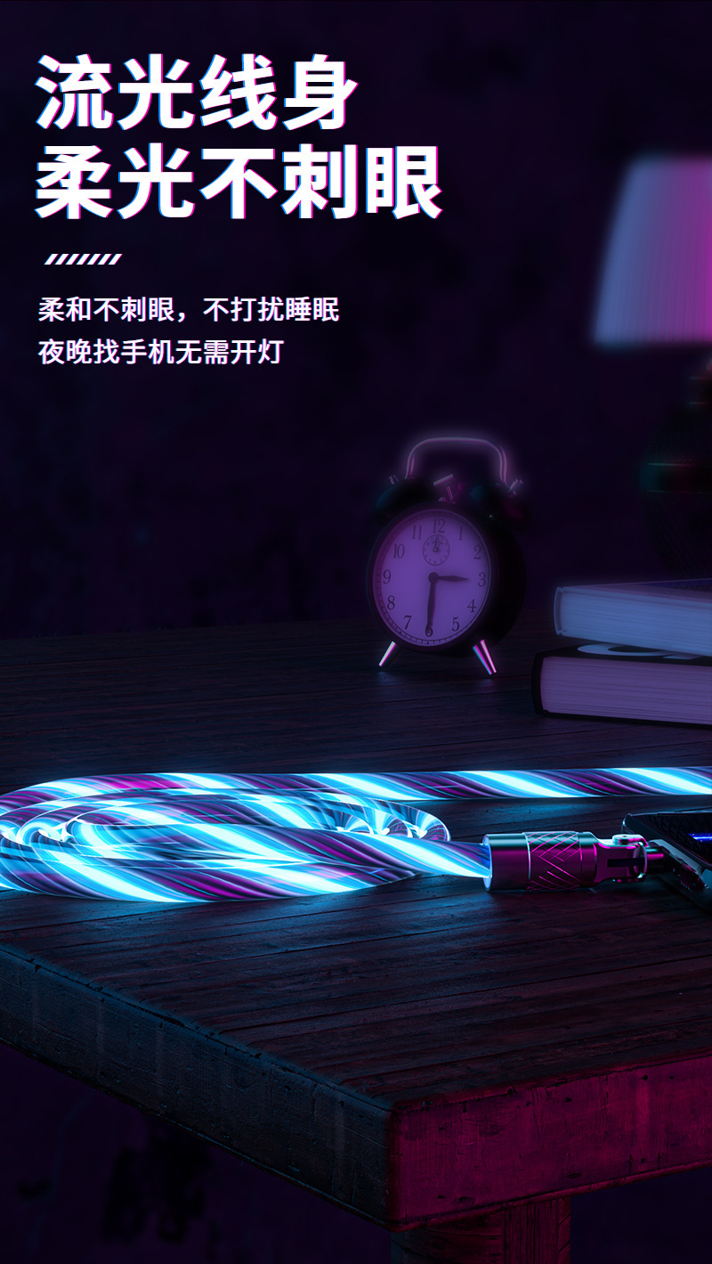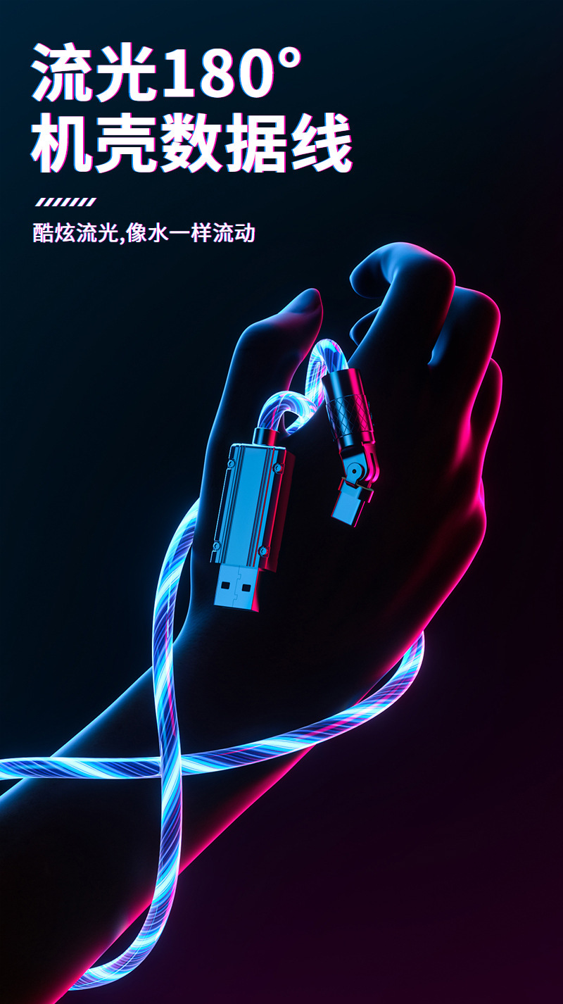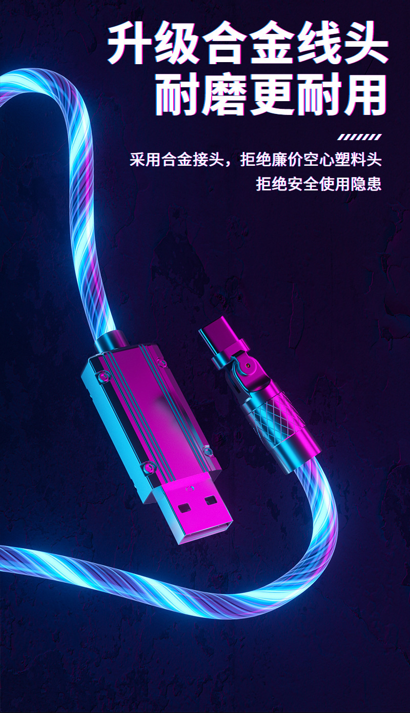 流光180度机客数据线七彩夜光跑马灯使用安卓typeC手机通用数据线