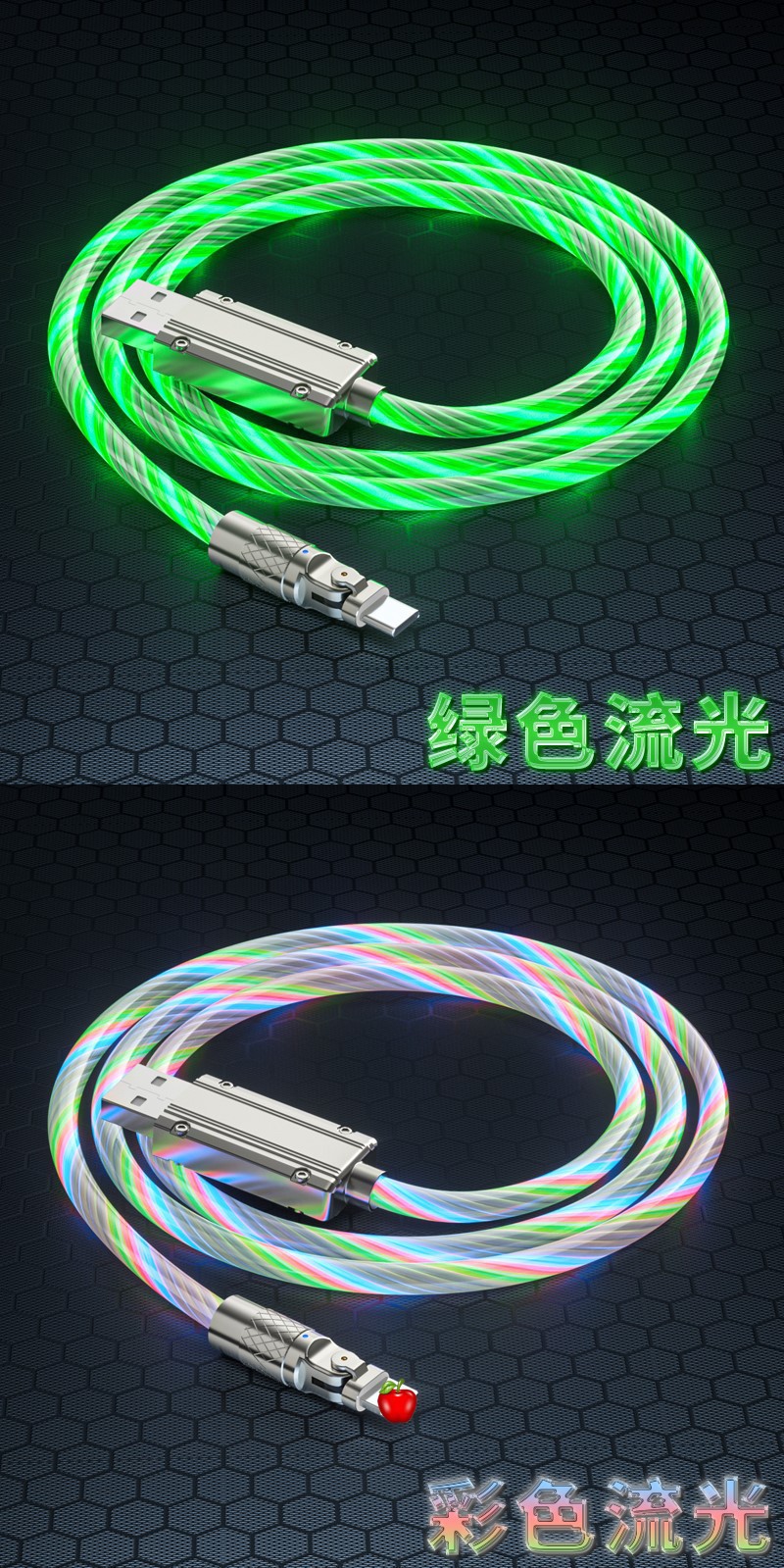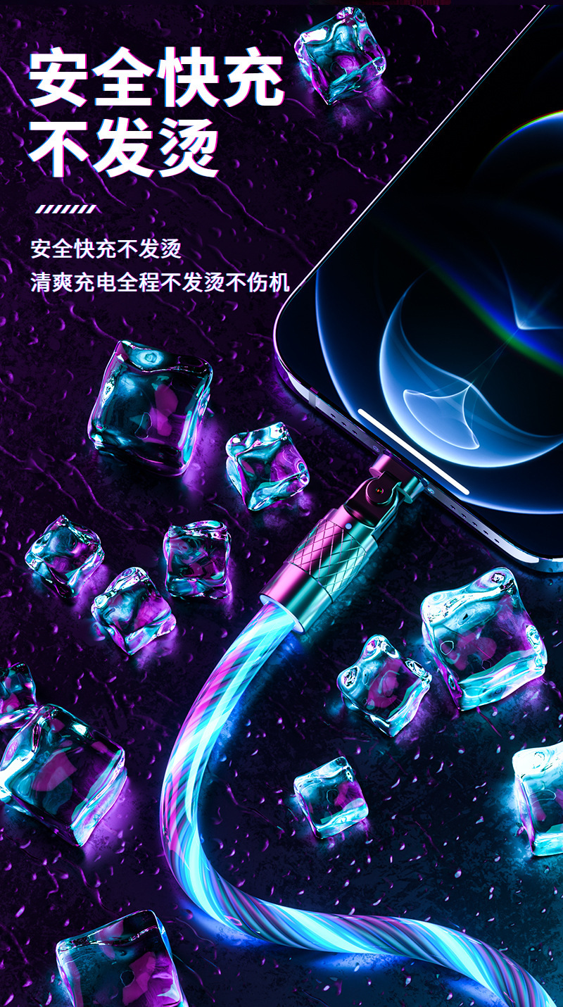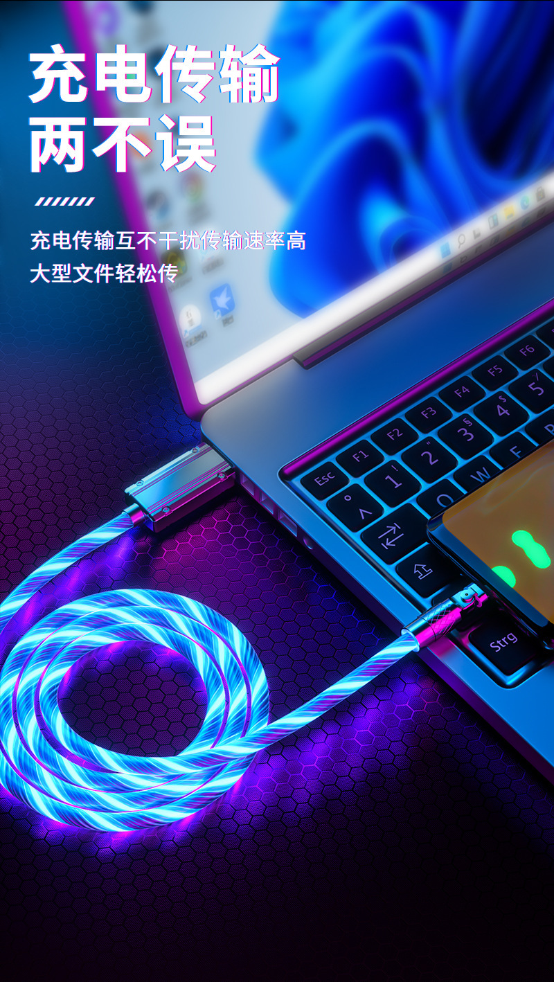 流光180度机客数据线七彩夜光跑马灯使用安卓typeC手机通用数据线