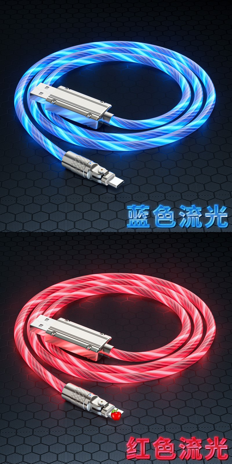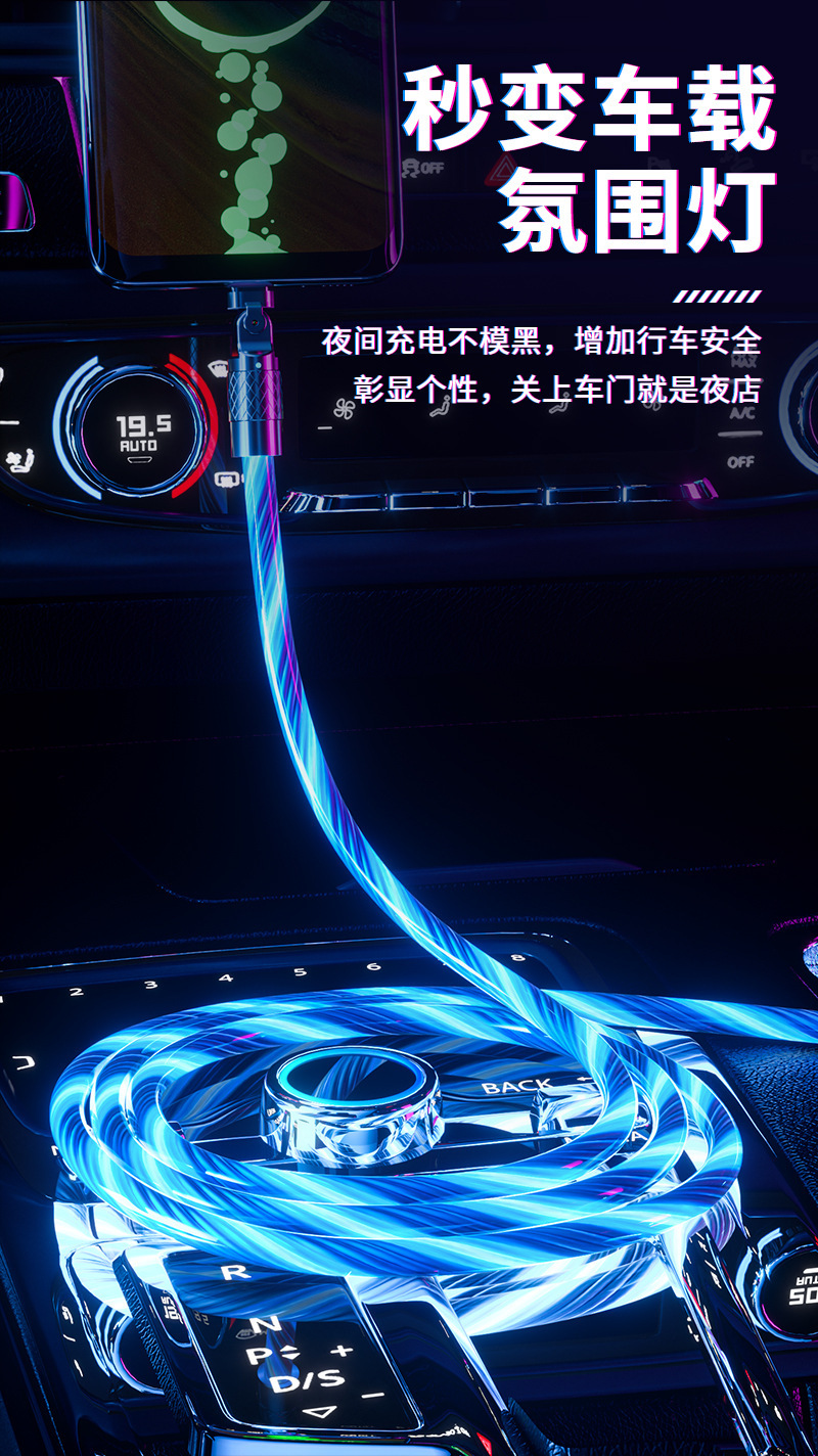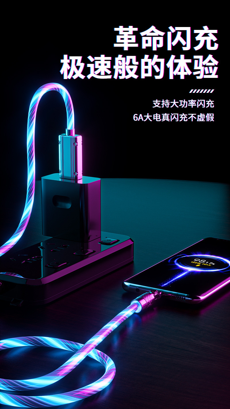 推荐理由:流光180度机客数据线七彩夜光跑马灯使用安卓typeC手机通用数据线
