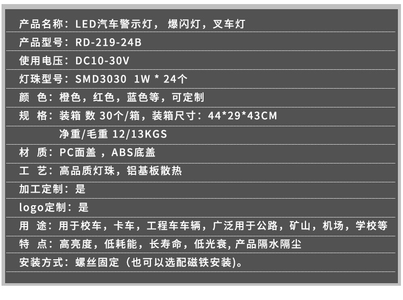 简易安装LED汽车警示灯交通控制LED警示灯校车工程车车辆爆闪灯