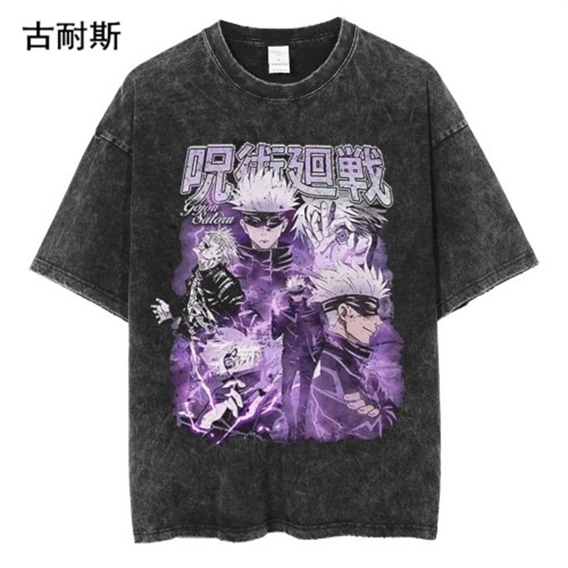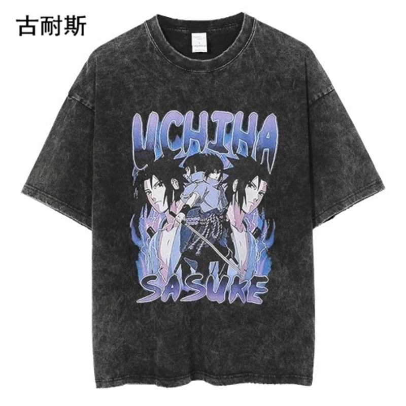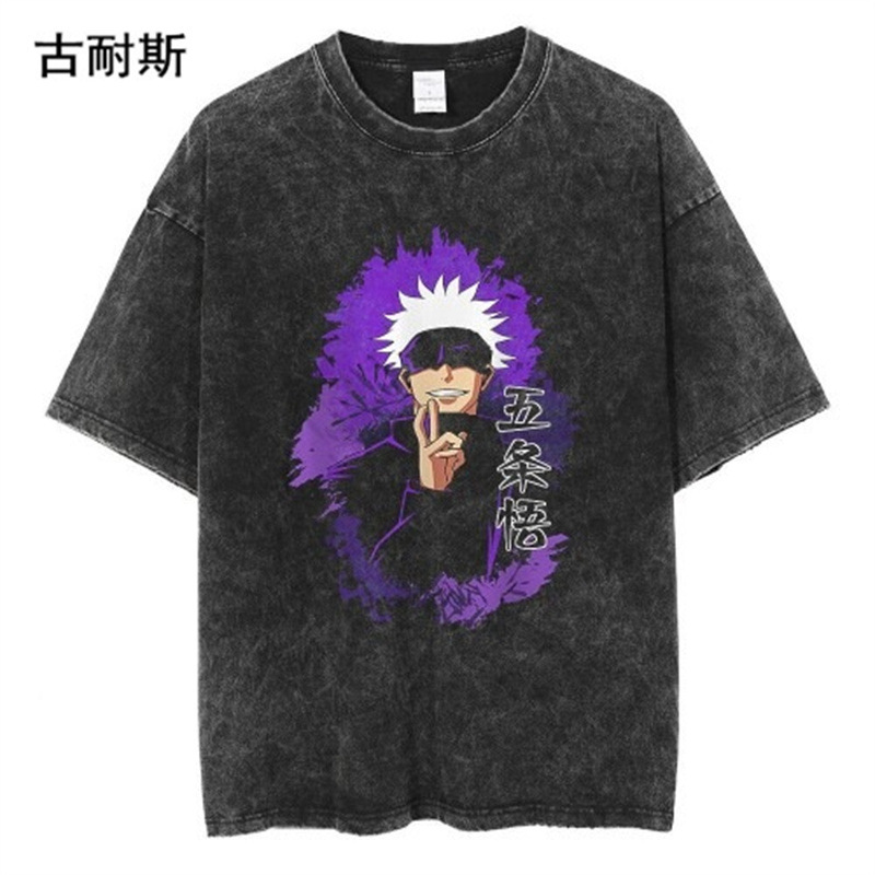 亚马逊LAZADA百搭复古水洗做旧设计感体恤衣服短袖t恤男夏季宽松