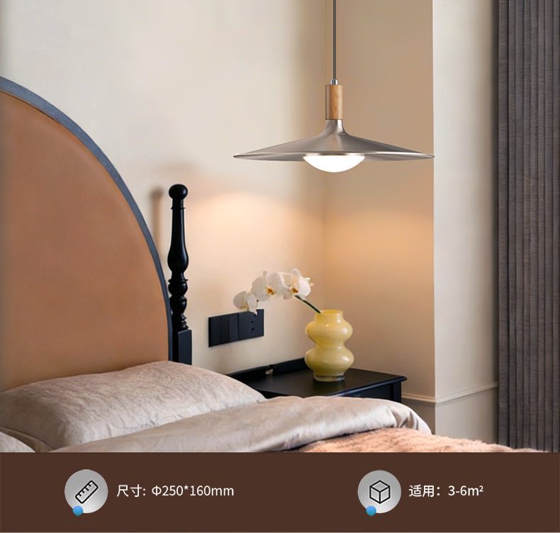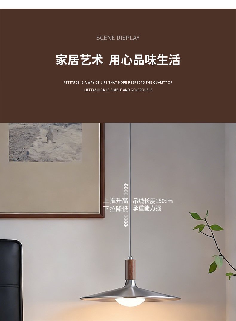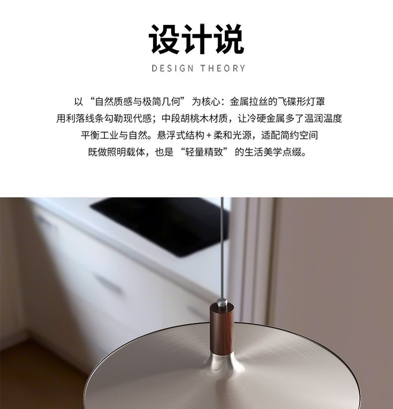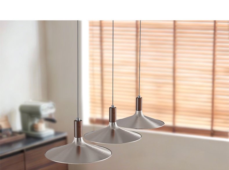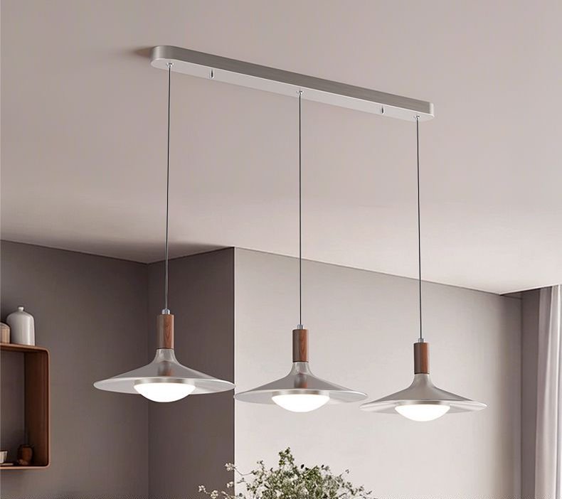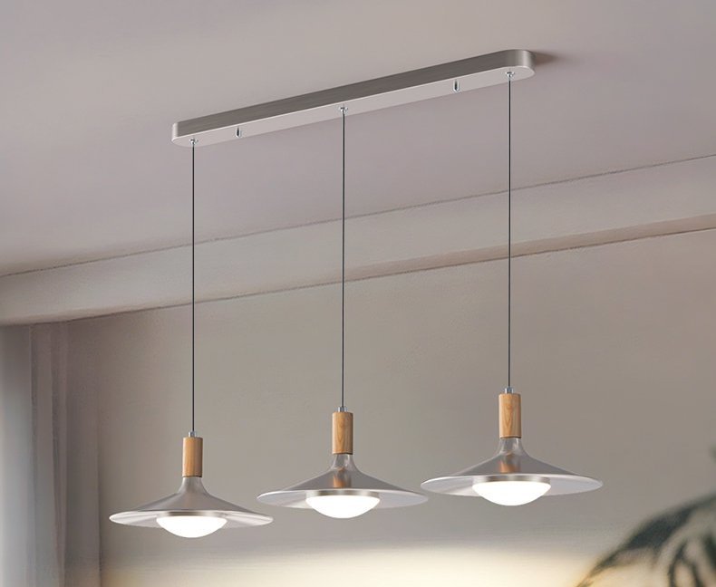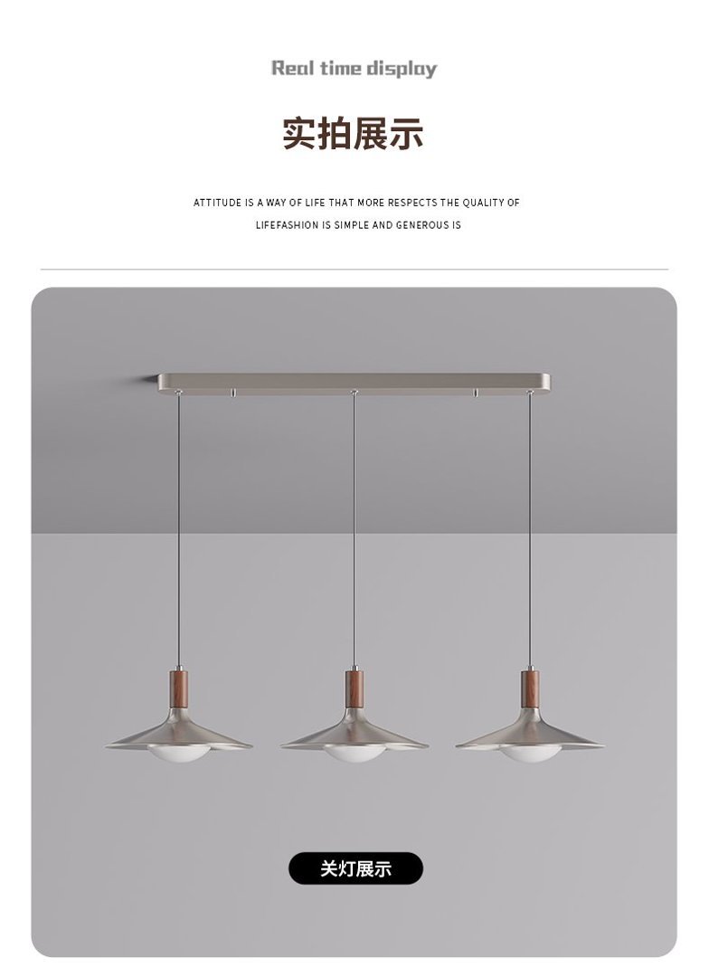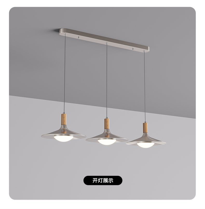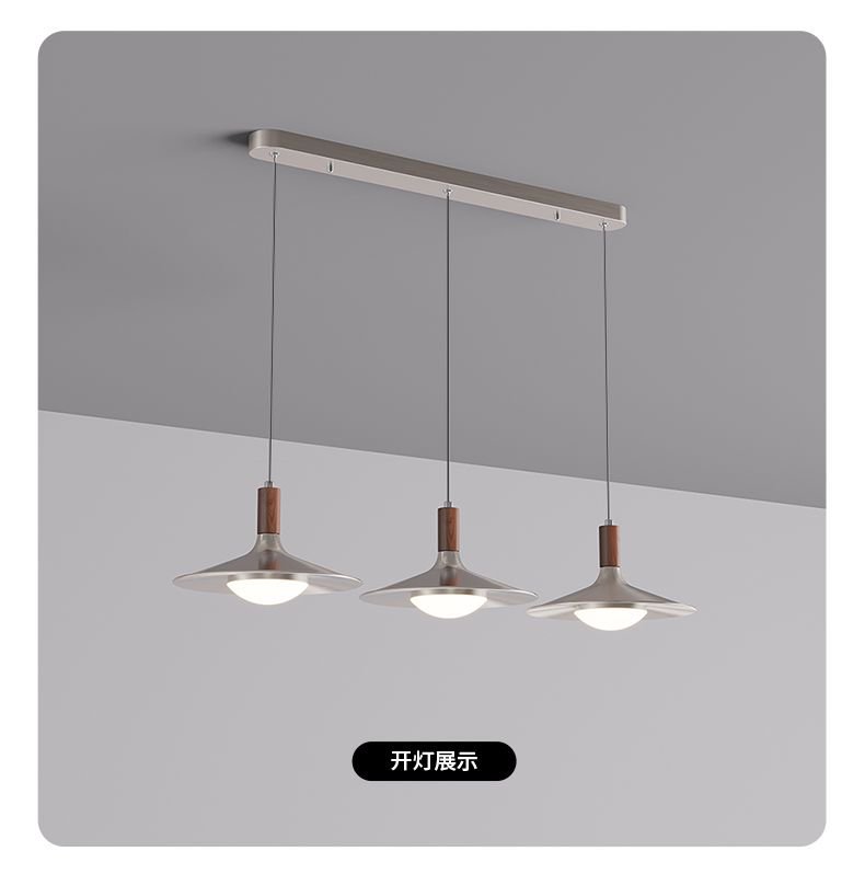 飞碟餐厅吊灯三头中古风灯具胡桃木色日式复古侘寂风茶室餐桌吊灯