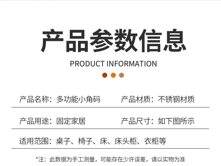 推荐理由:不锈钢多功能角码加厚三面角码角铁连接件固定90度直角支架批发
