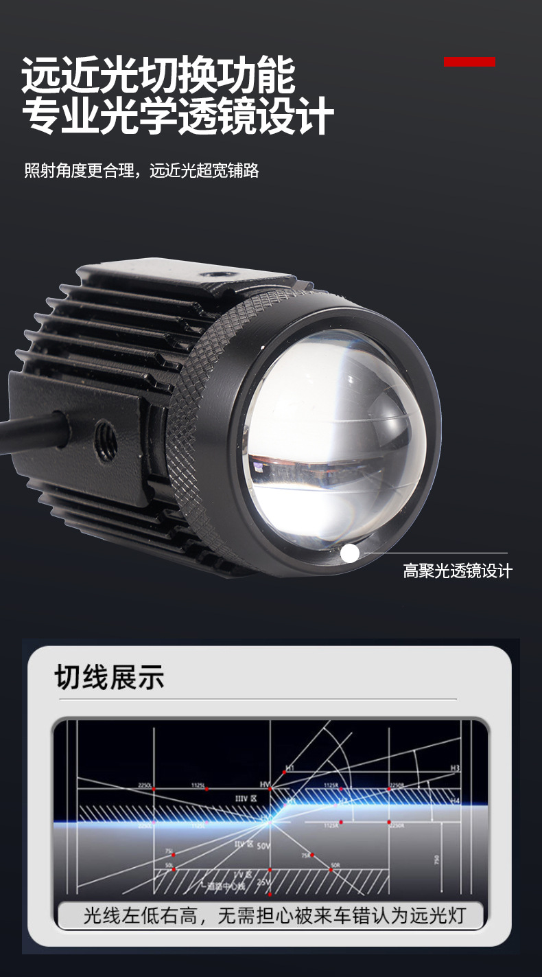 跨境超亮铺路强光摩托车小钢炮双光透镜led切线射灯外置大灯汽车