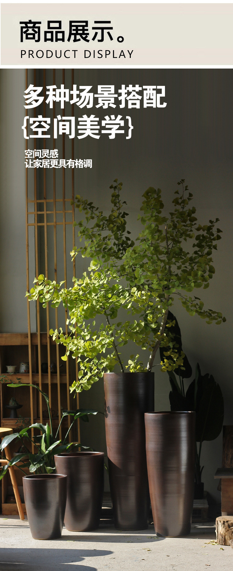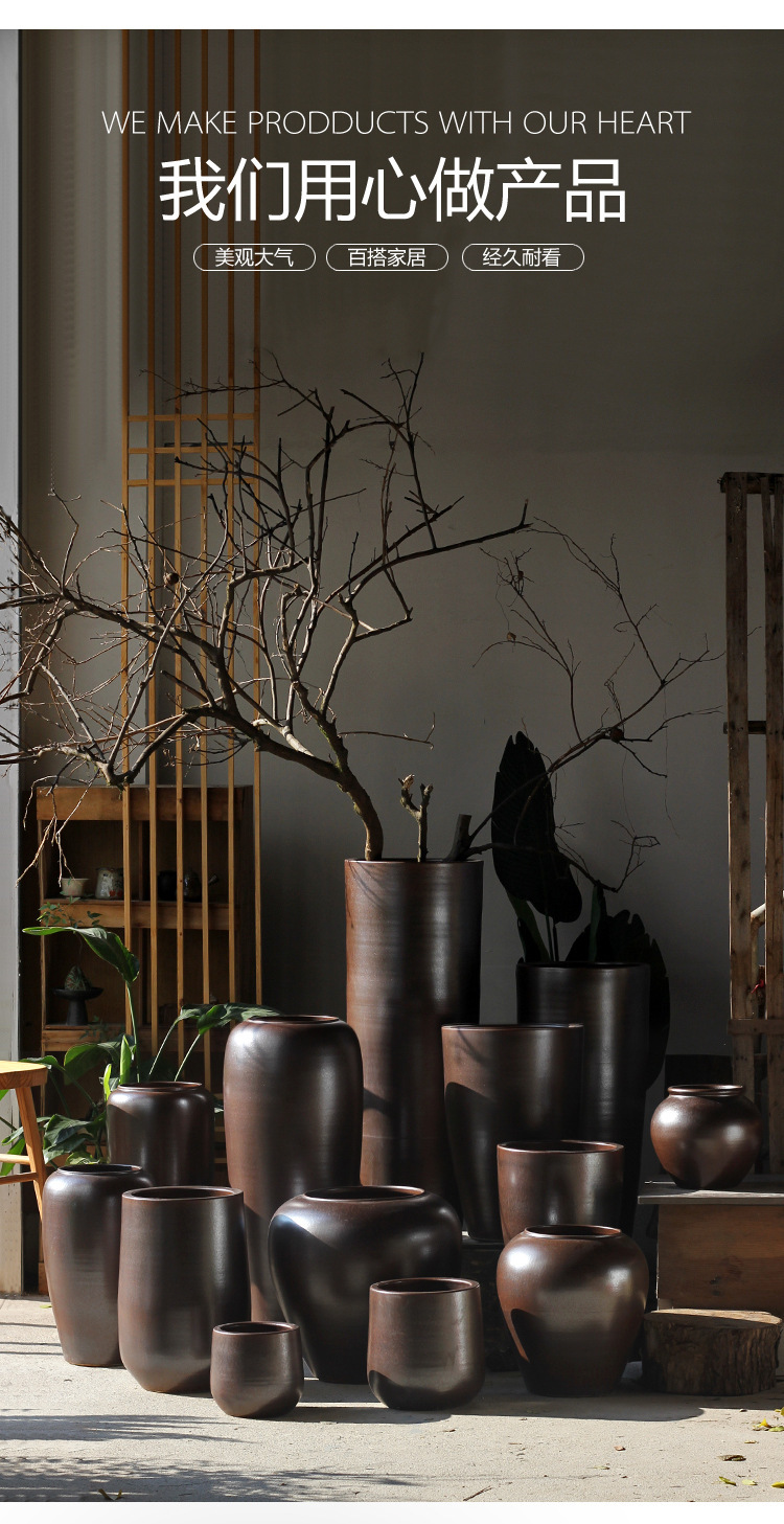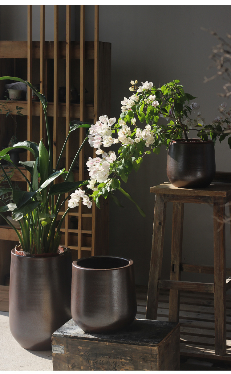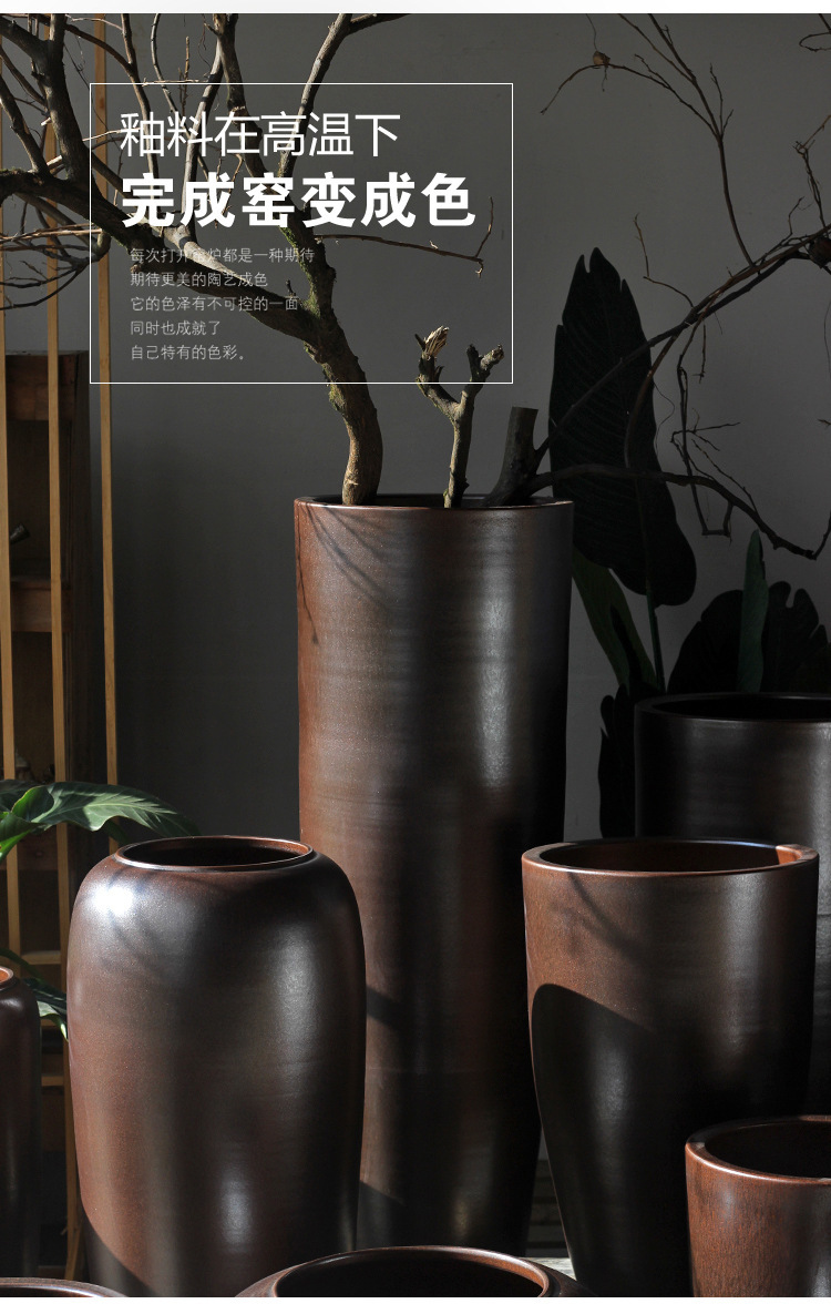 新中式大号落地陶瓷花盆瓶陶罐宽口种植干支花器酒店庭院别墅软装