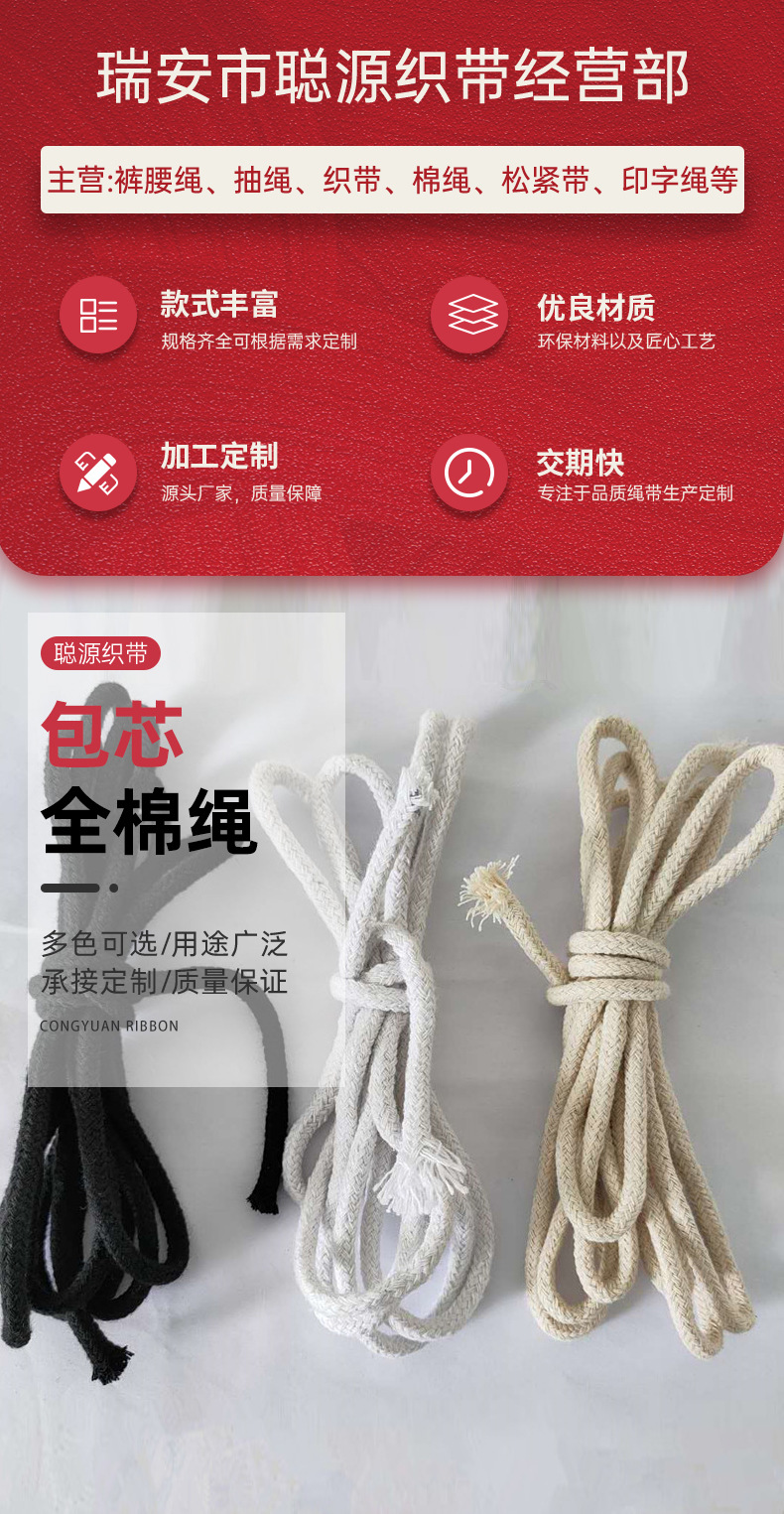 厂家批发1.5-7MM包芯全棉绳卫衣帽绳裤绳腰绳捆绑束口服装辅料