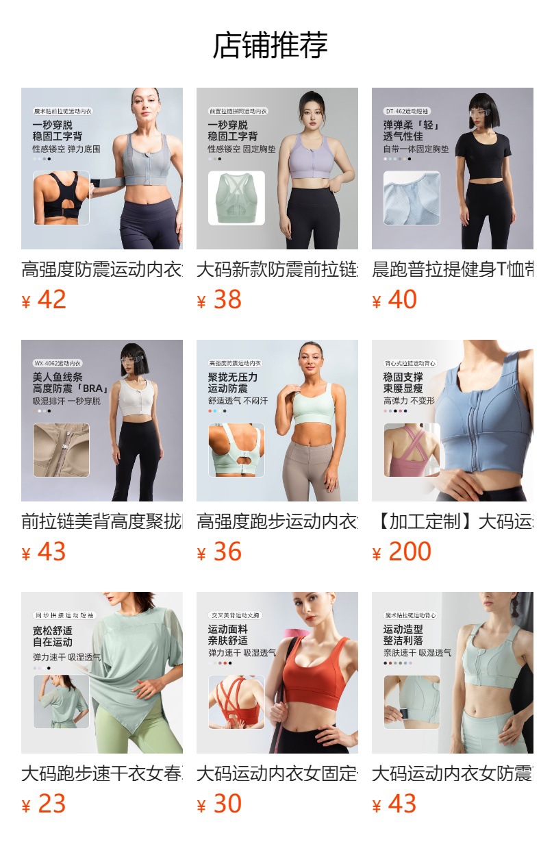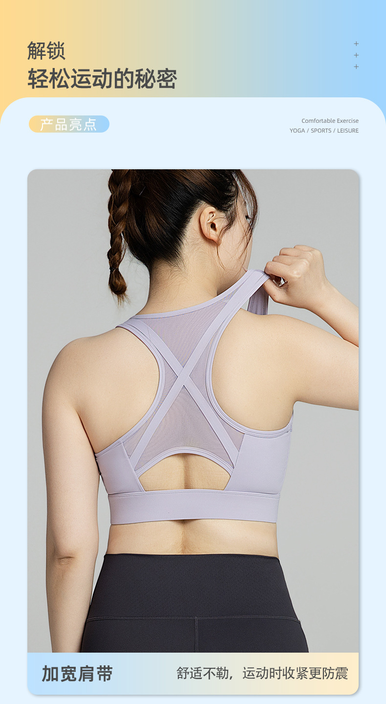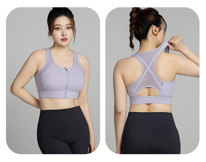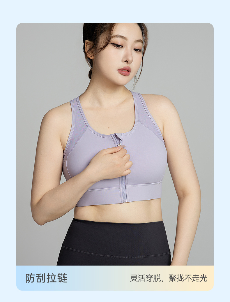 推荐理由:大码新款防震前拉链运动内衣固定一体式瑜伽背心跑步健身交叉文胸