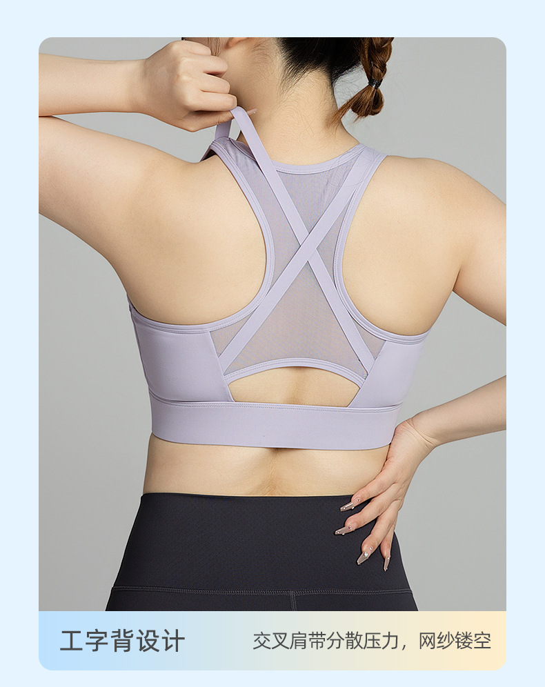 大码防震前拉链运动内衣 固定一体式瑜伽背心 跑步健身交叉文胸