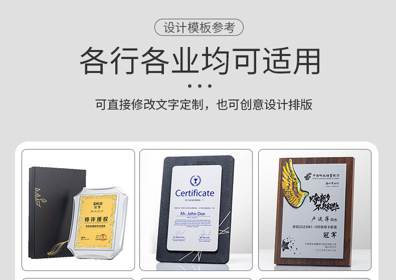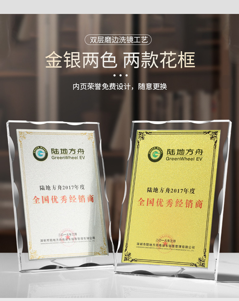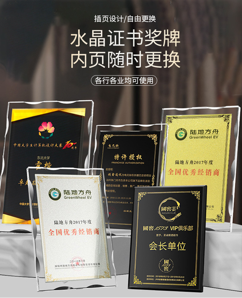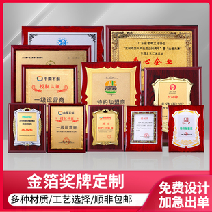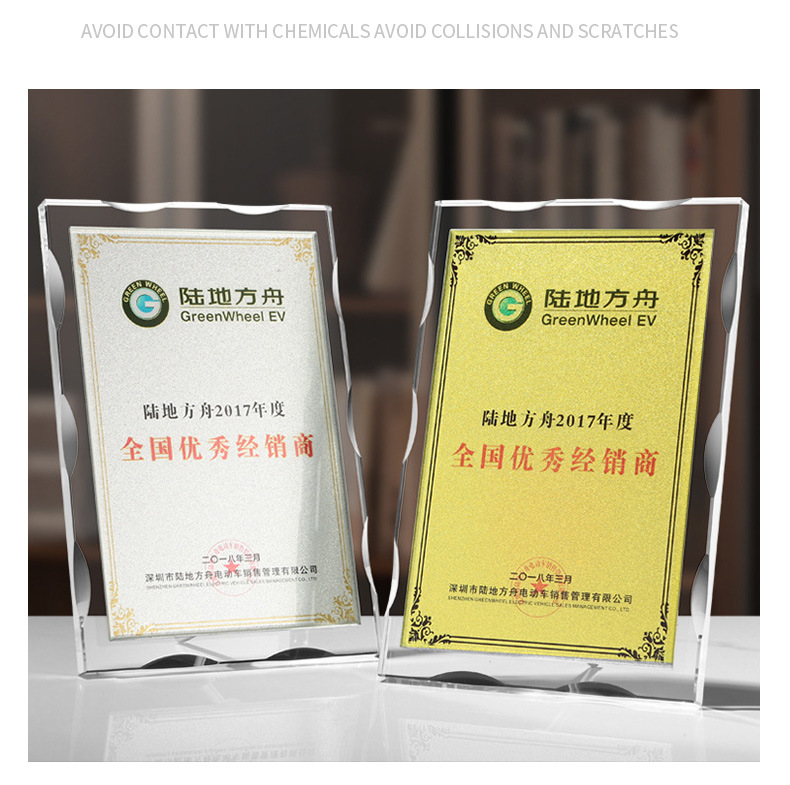 水晶奖杯奖牌创意牌匾金字荣誉授权牌荣誉证书制作刻字