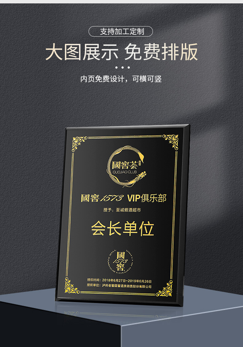水晶奖牌授权牌聘书木质荣誉证书加盟牌商会会员牌匾木托奖牌
