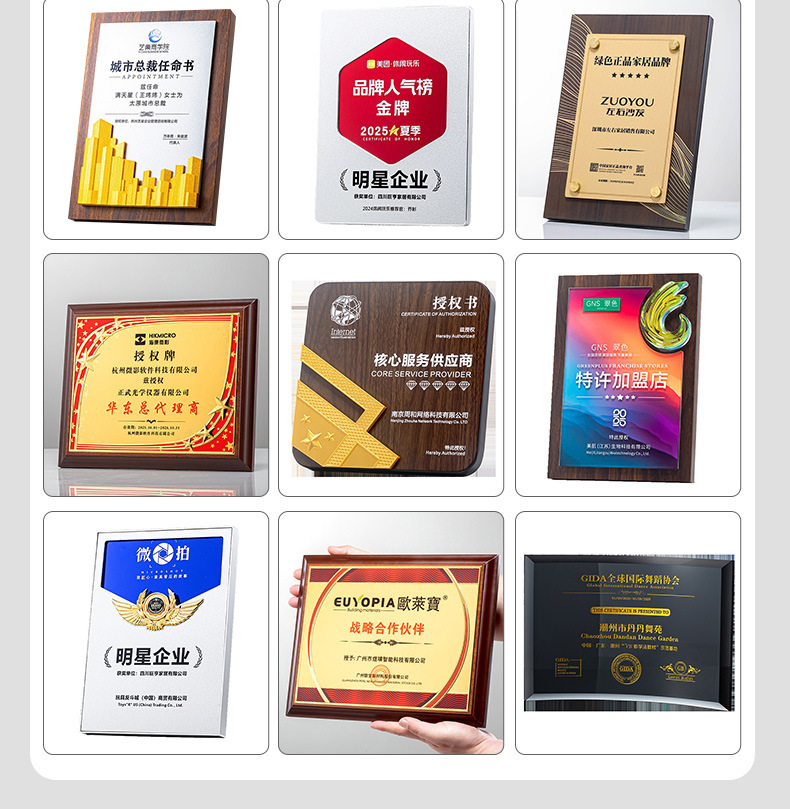2025新款木质授权牌奖牌创意荣誉代理证书加盟牌匾