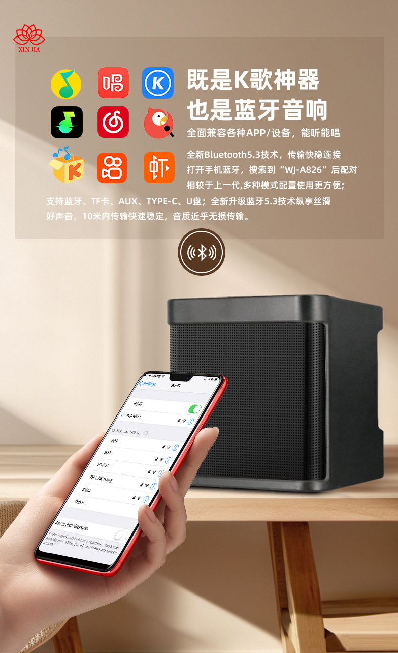 支持蓝牙连接手机,在全民K歌酷狗等唱歌;