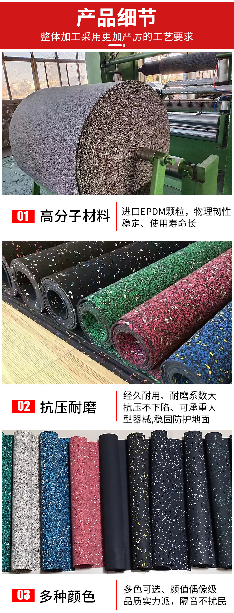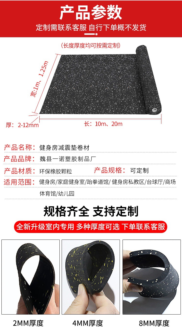 健身房橡胶卷材防滑减震隔音垫耐磨运动训练地胶健身器材专用地垫,批发价,价格:25.66,厂家直销,健身房橡胶卷材防滑减震隔音垫耐磨运动训练地胶健身器材专用地垫,免费拿样。