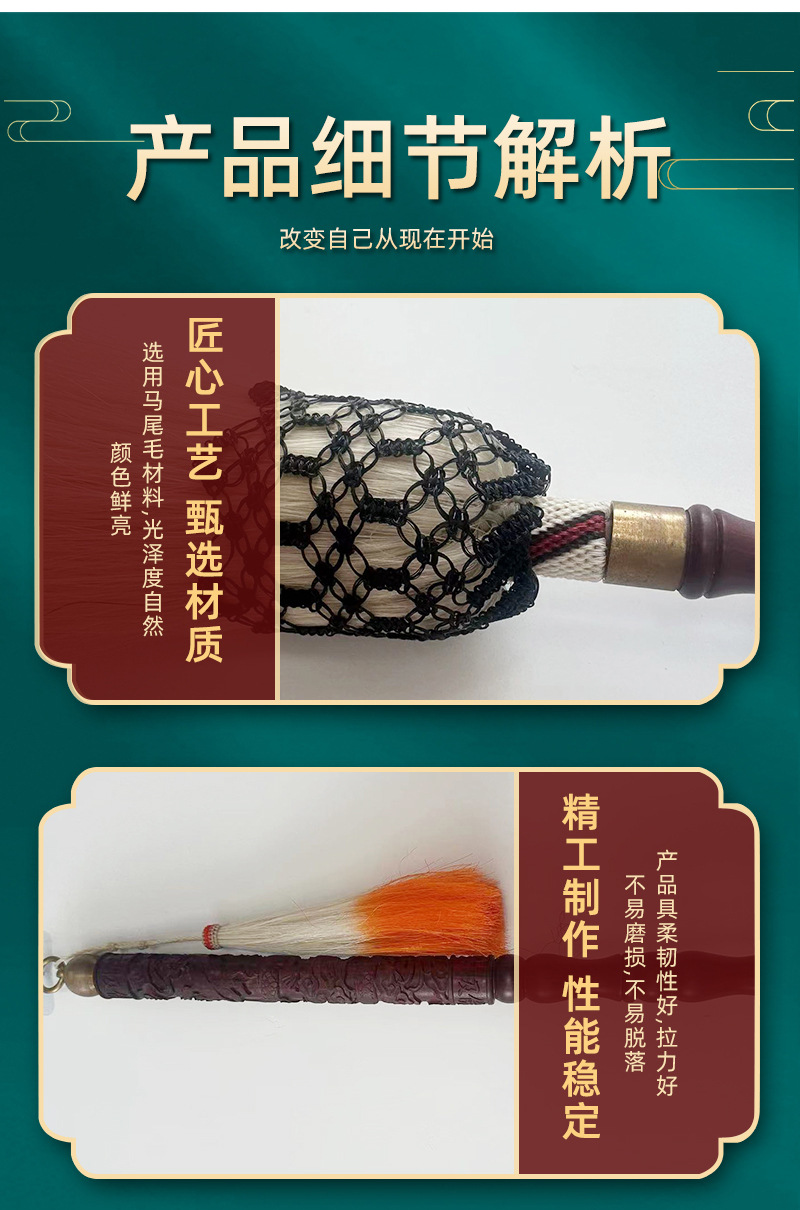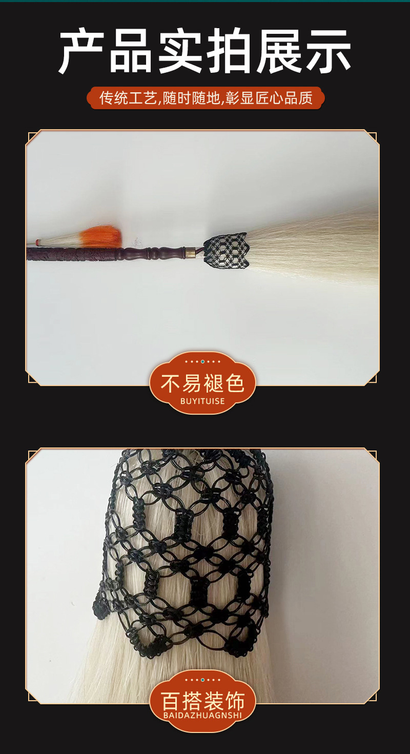 雕龙杆拂尘戏剧表演用真马尾道具佛尘掸子古风太极用品手工仿古