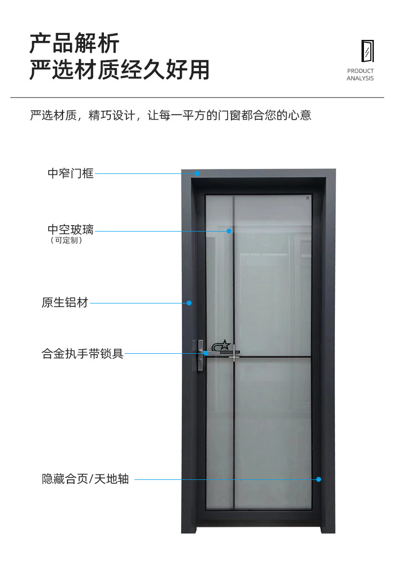 中窄卫生间门定制厕所门隔热洗手间门铝合金玻璃门平开门厂家批发