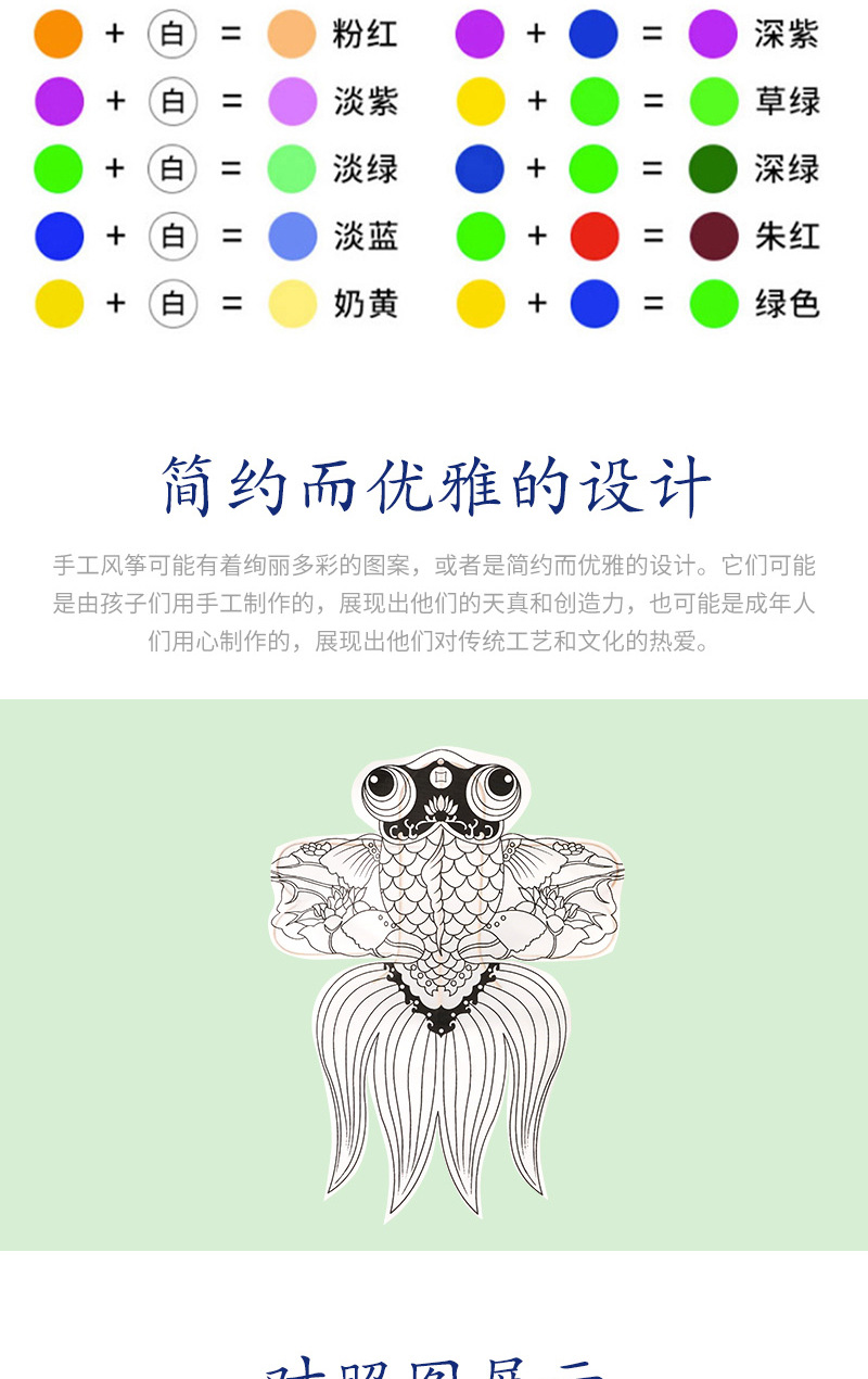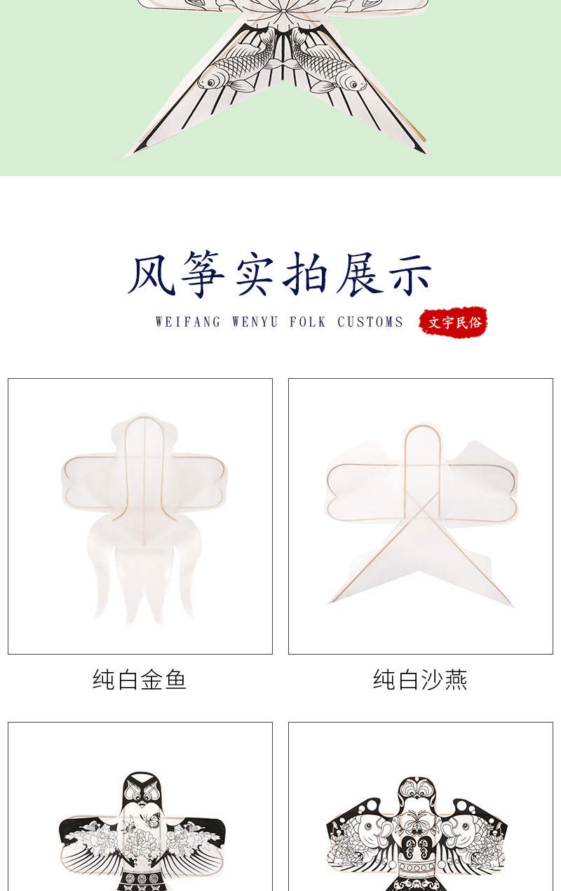 diy风筝空白涂鸦绘画儿童手工幼儿亲子涂色卡通金鱼沙燕风筝