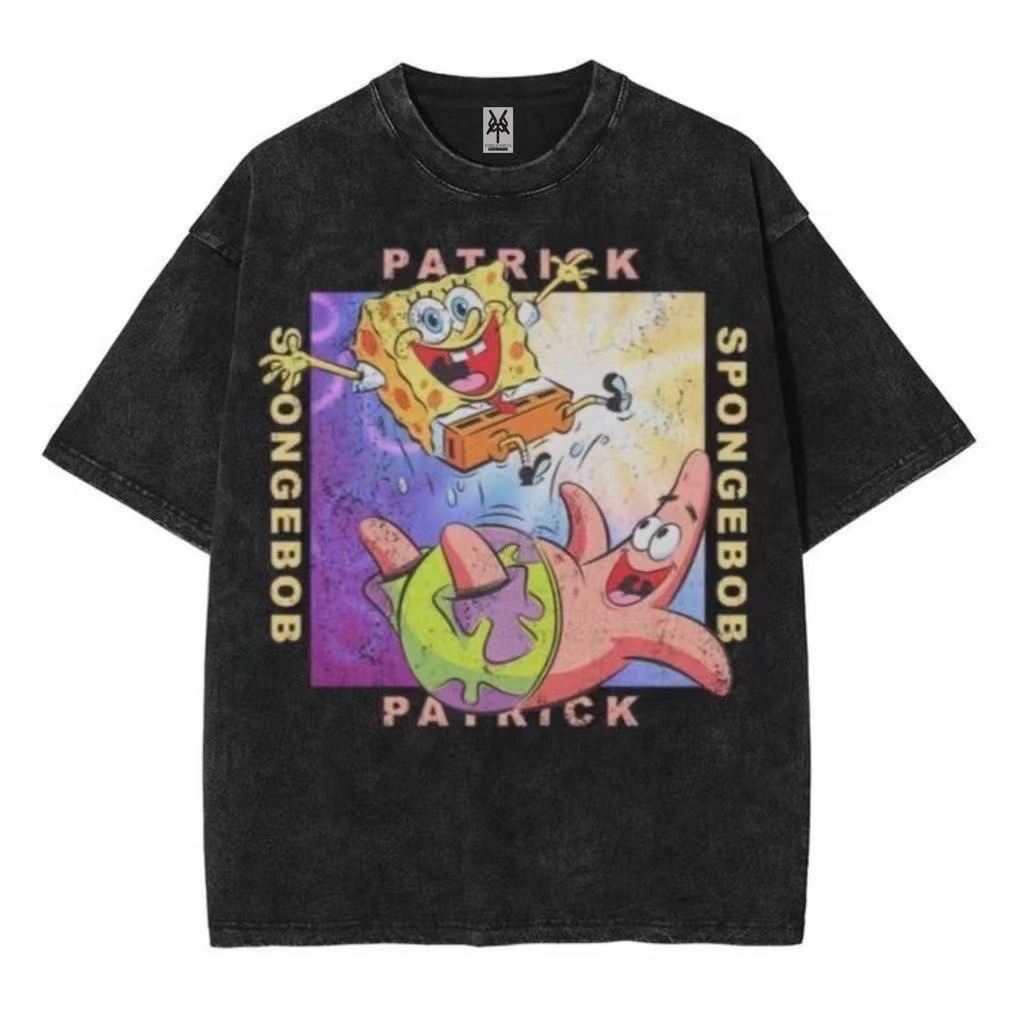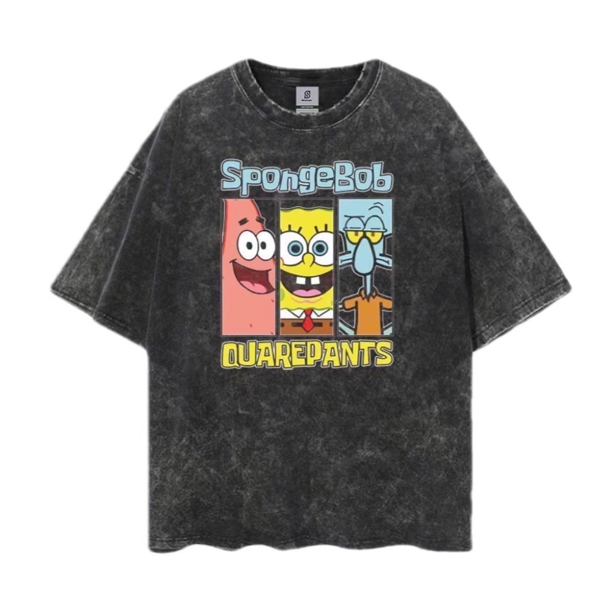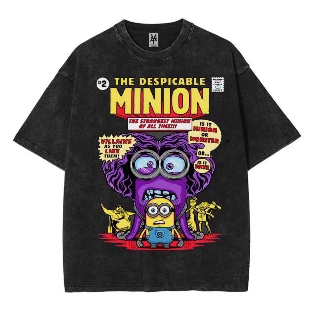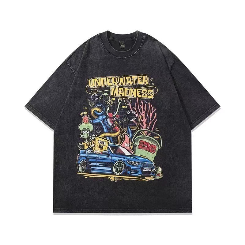 卡通动漫欧美高街复古水洗做旧印花打底衫情侣嘻哈休闲宽松短袖T