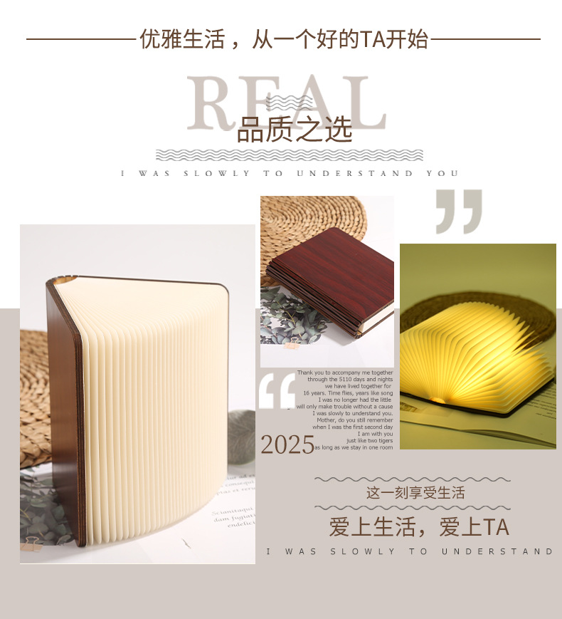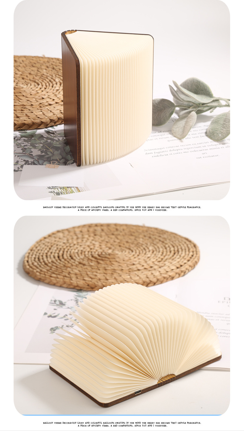 床头氛围彩色书本灯木质书灯创意折叠翻页充电款小夜灯厂家批发