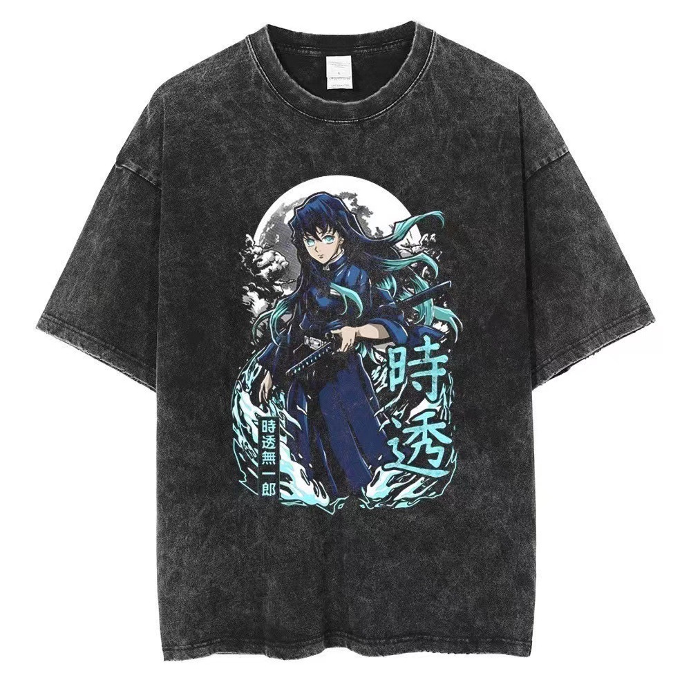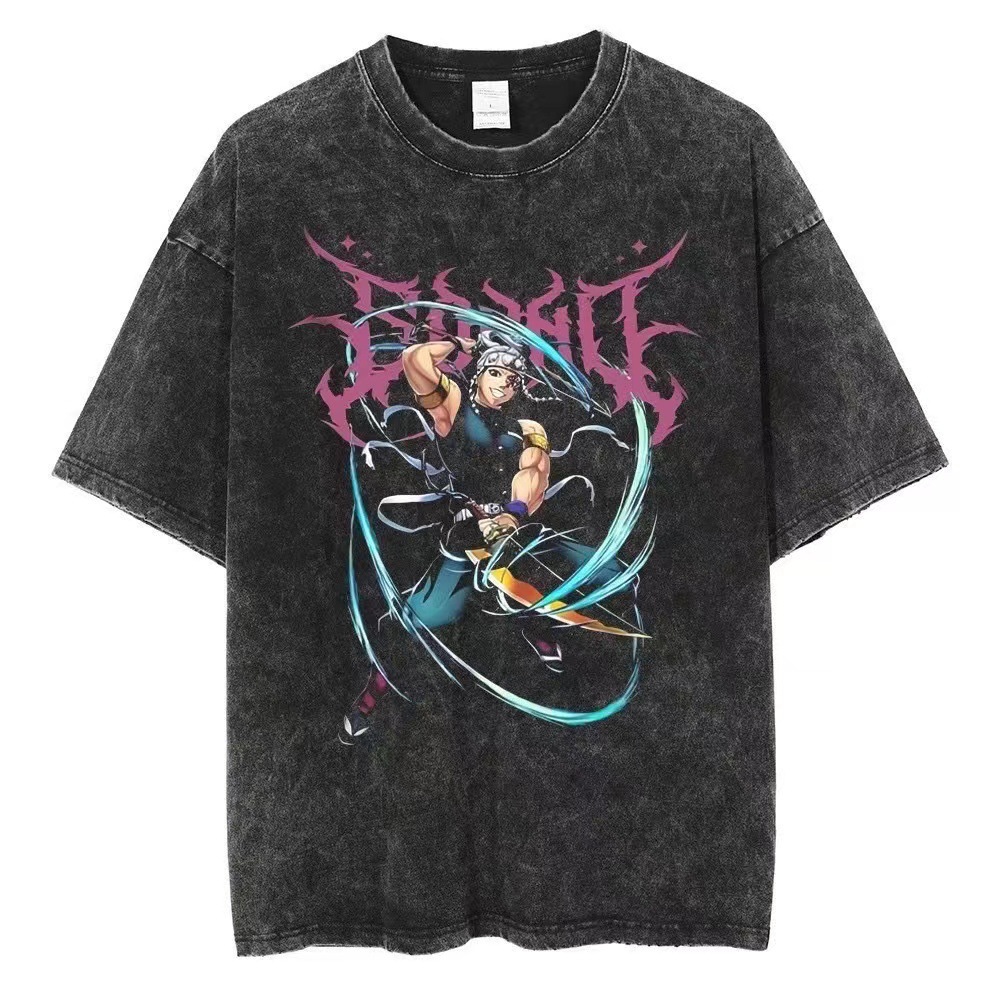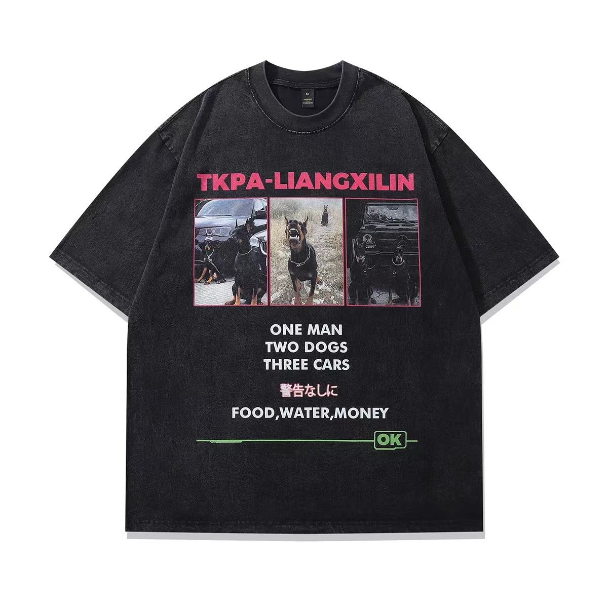 LAZADA印花水洗半袖T恤男女美式街头潮牌做旧短袖t恤wish批发透气