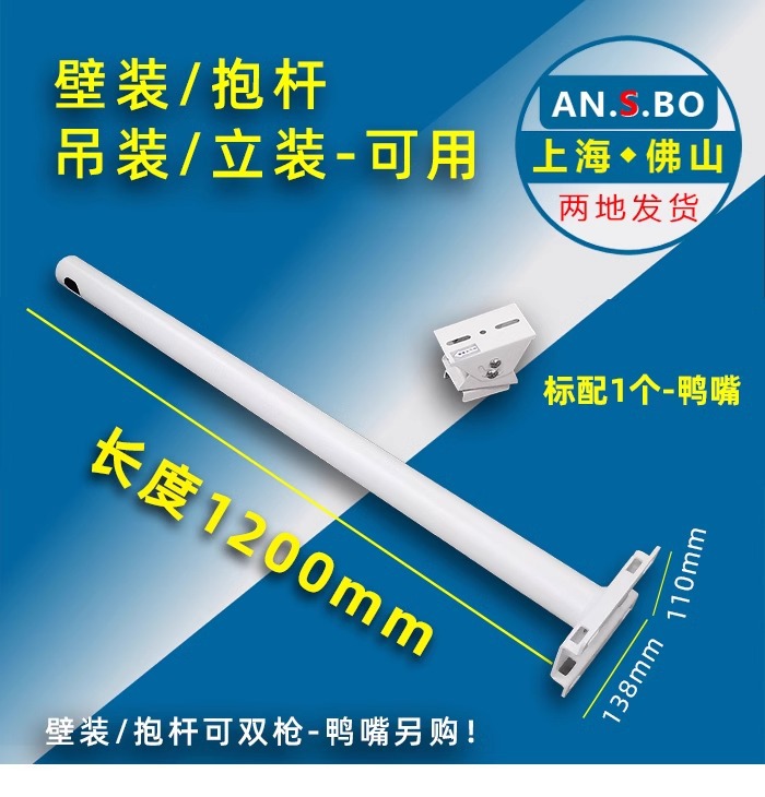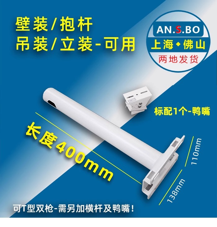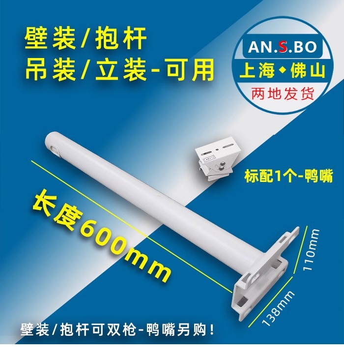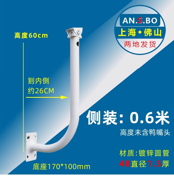 安氏宝监控加长支架摄像头围墙L型借墙抱箍杆立吊装通用室外支架