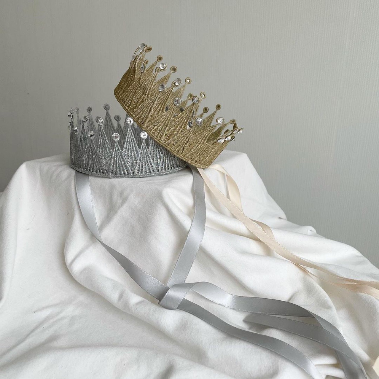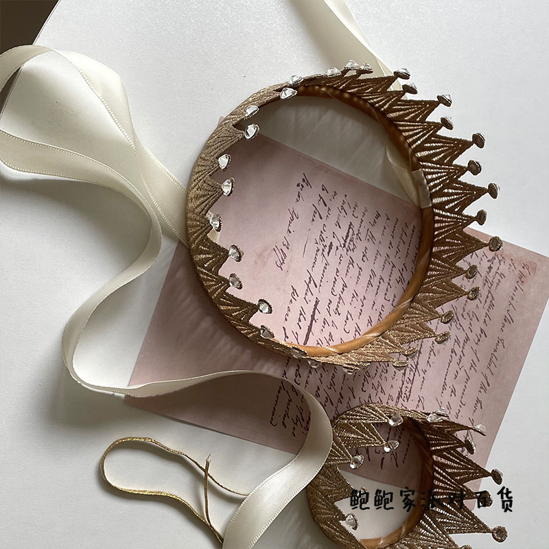 韩国王子公主男女孩可爱儿童周岁生日帽百天系带金色王冠发饰批发