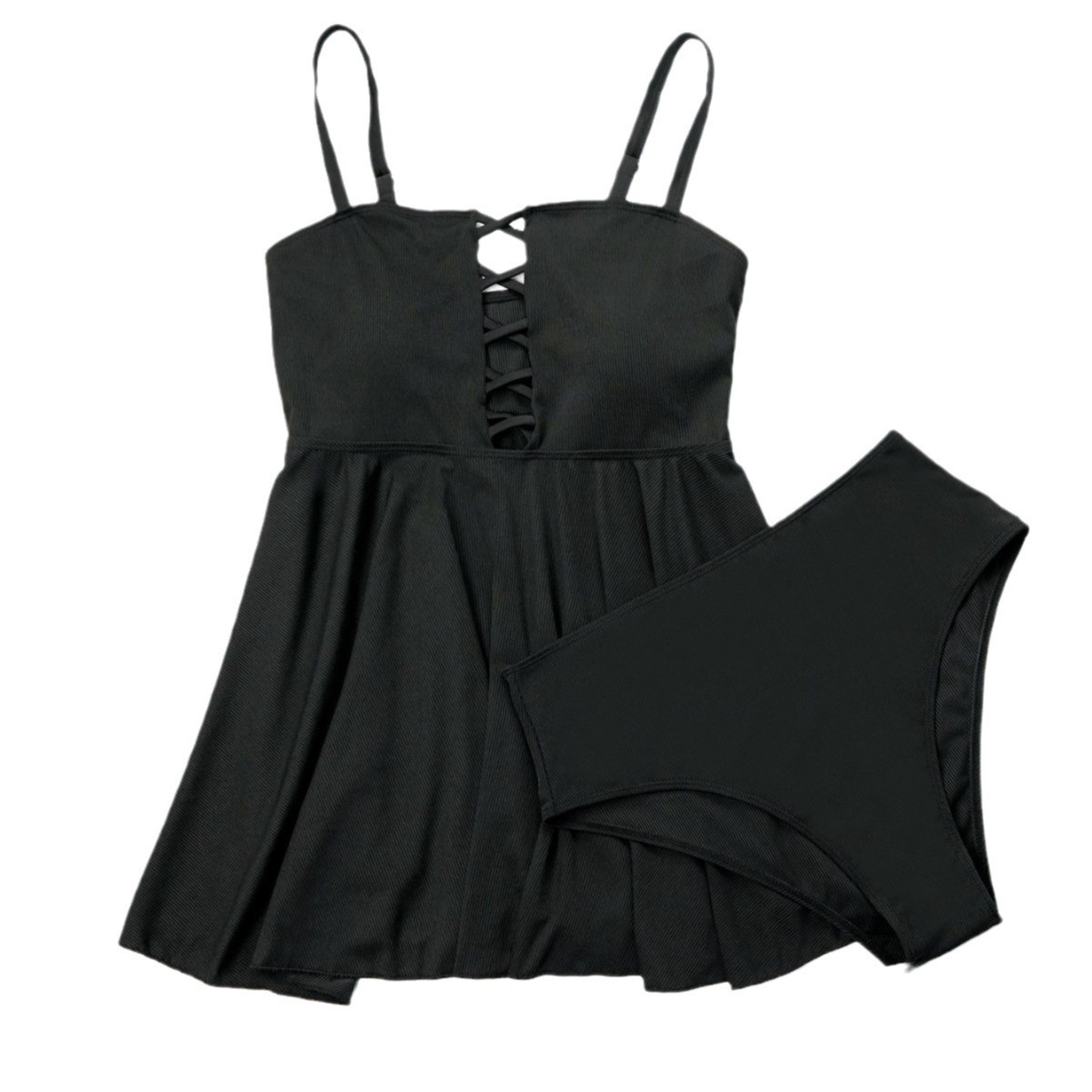 2025大码性感露背裙式分体泳衣女欧美外贸镂空露背肥婆保守游泳衣