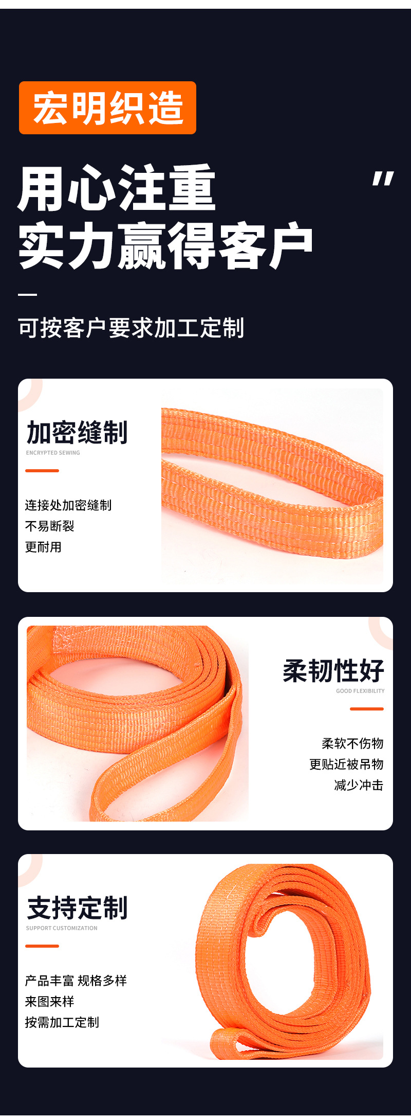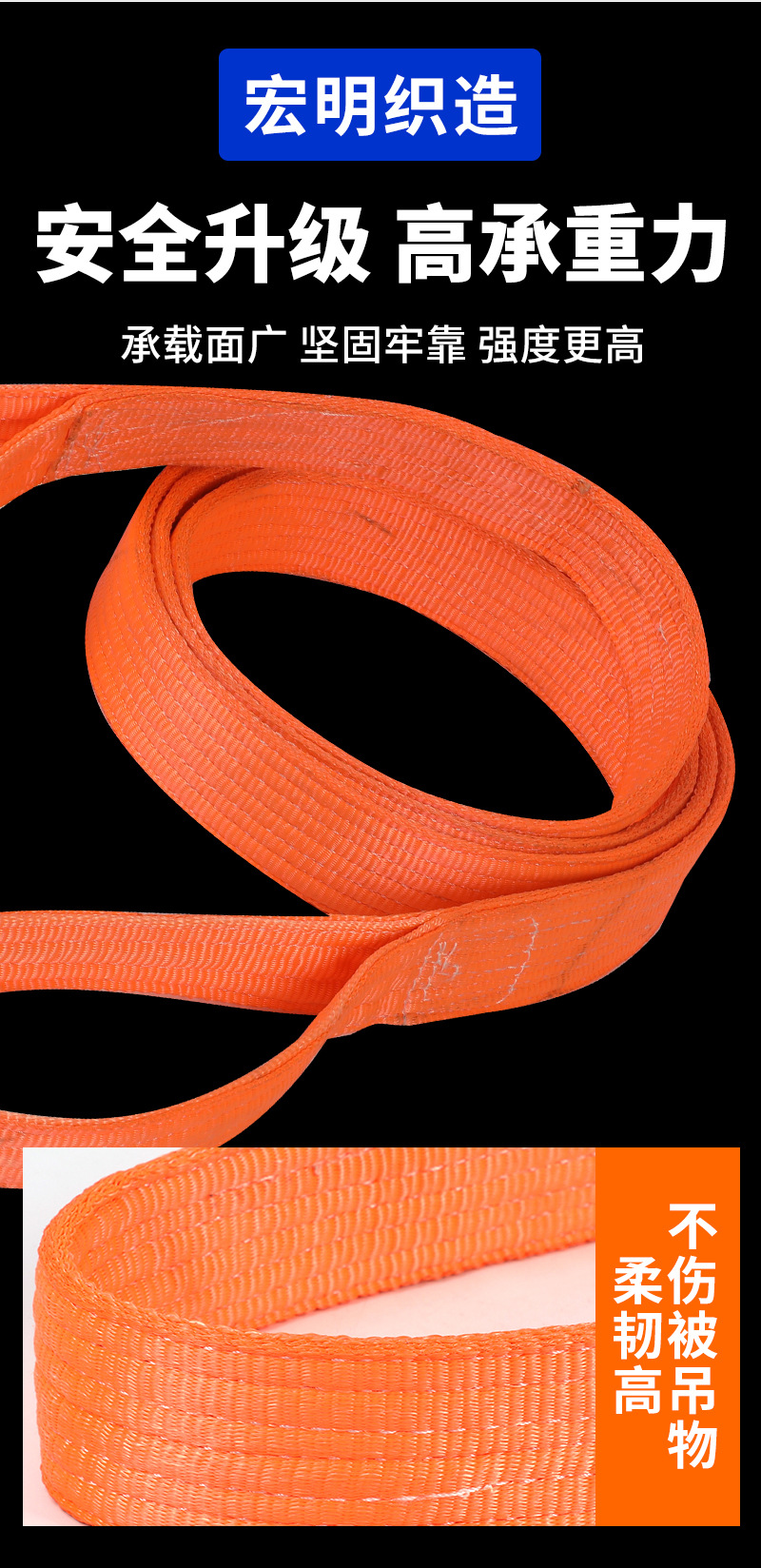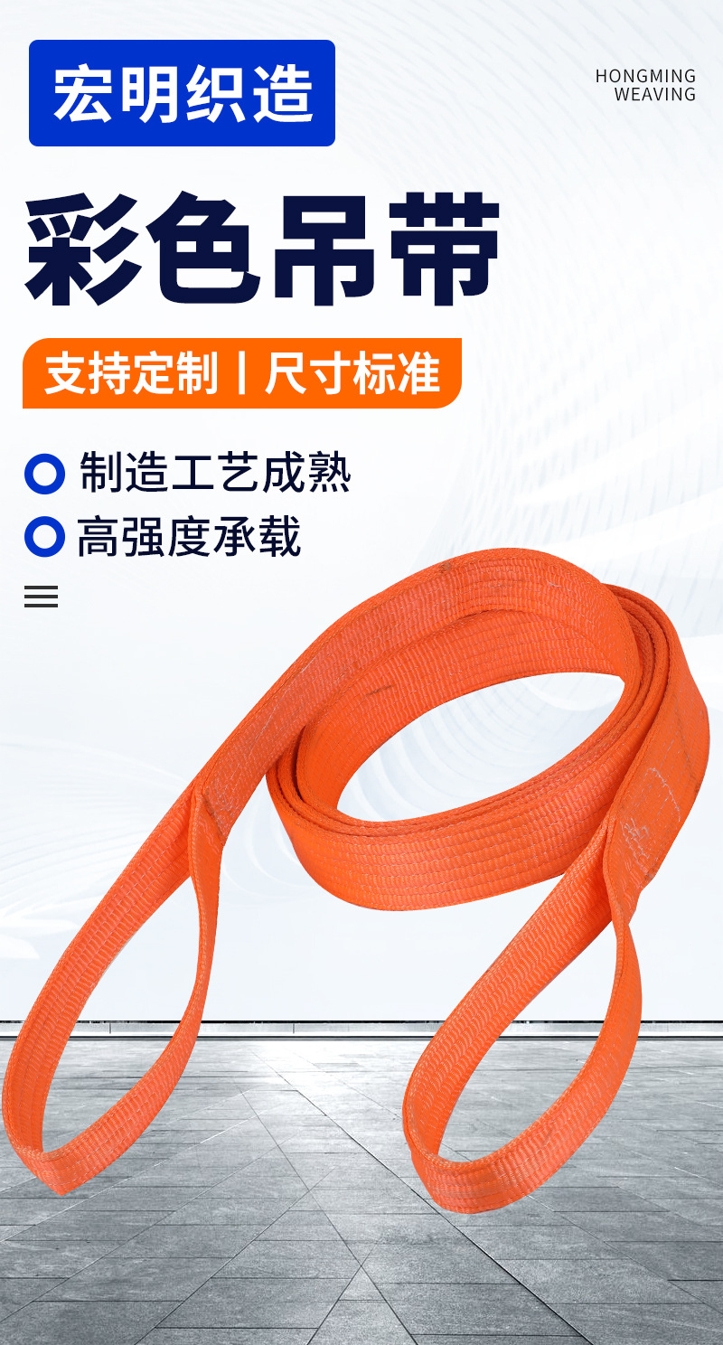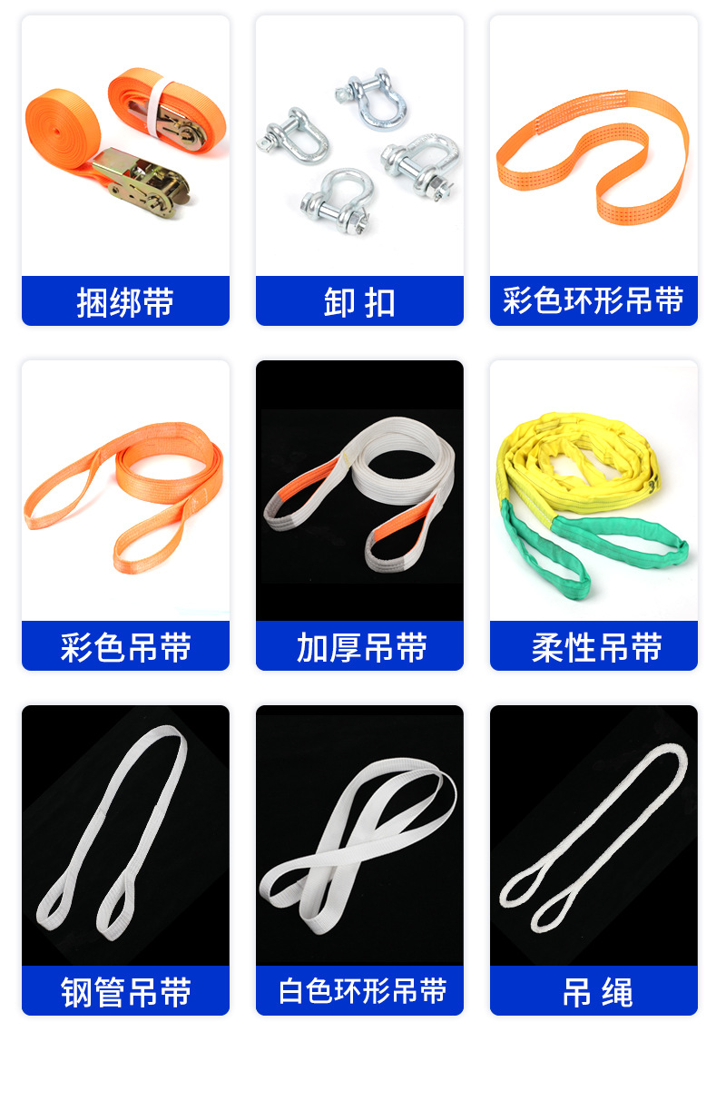 彩色吊带起重设备彩色吊带 橙色涤纶捆绑带 工业级彩色吊带刹车绳