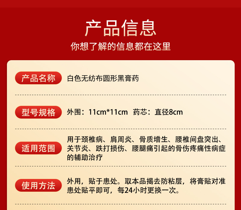 跨境膏贴源头厂家批发圆形黑膏贴颈椎腰椎贴代加工老黑膏贴理疗,批发价,价格:0.8,厂家直销,跨境膏贴源头厂家批发圆形黑膏贴颈椎腰椎贴代加工老黑膏贴理疗,免费拿样。