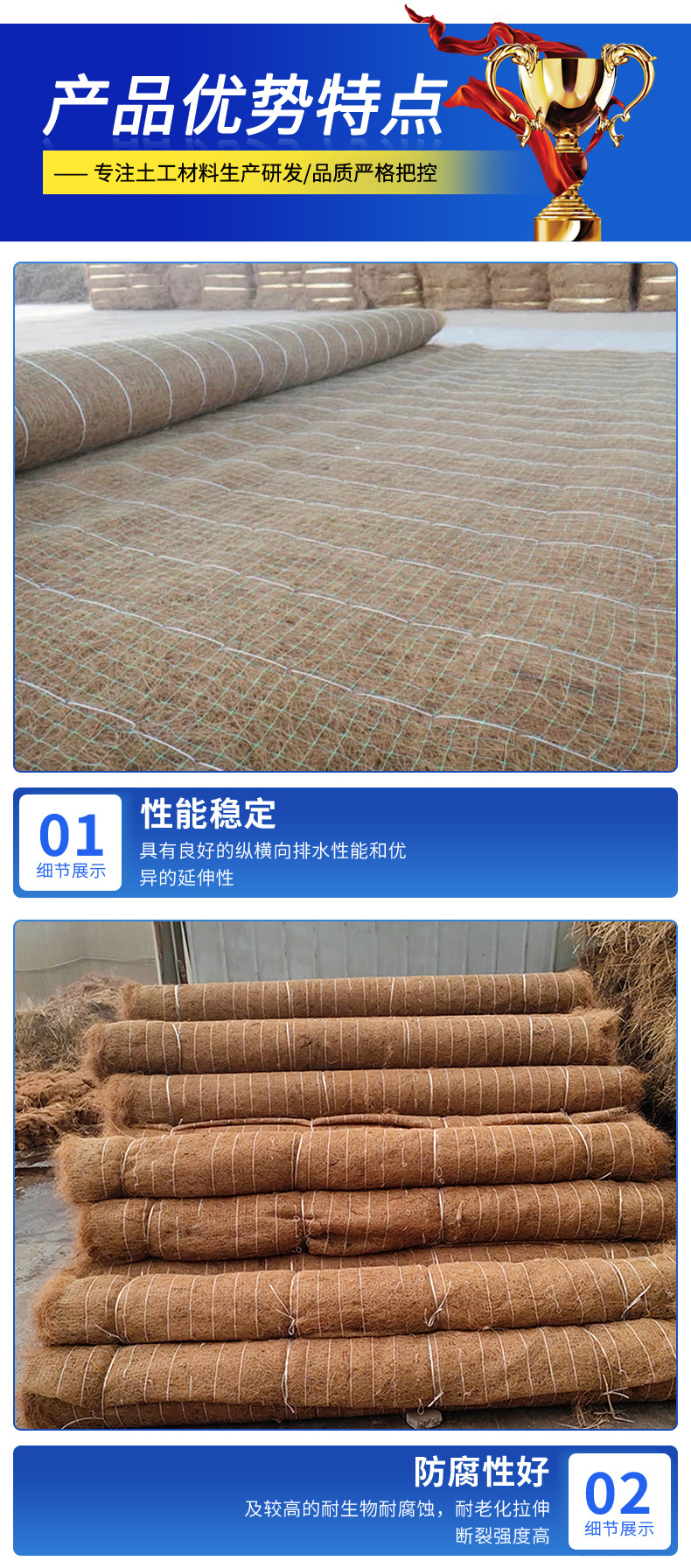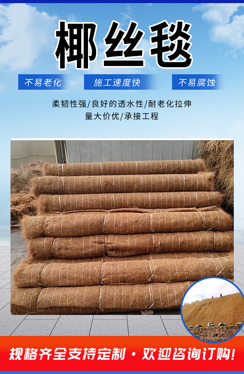 椰丝毯植草生态修复毯加筋草籽椰丝毯绿色植物纤维固土抗冲椰丝毯