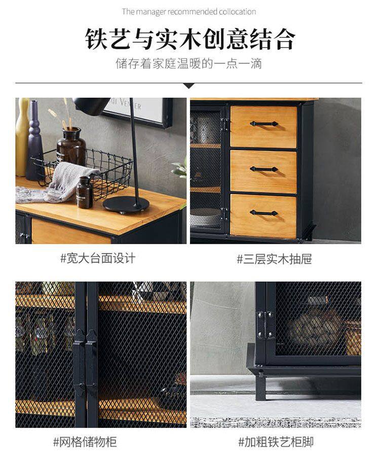美式复古餐边柜铁艺做旧储物收纳置物架客厅茶水酒橱柜子家用餐厅