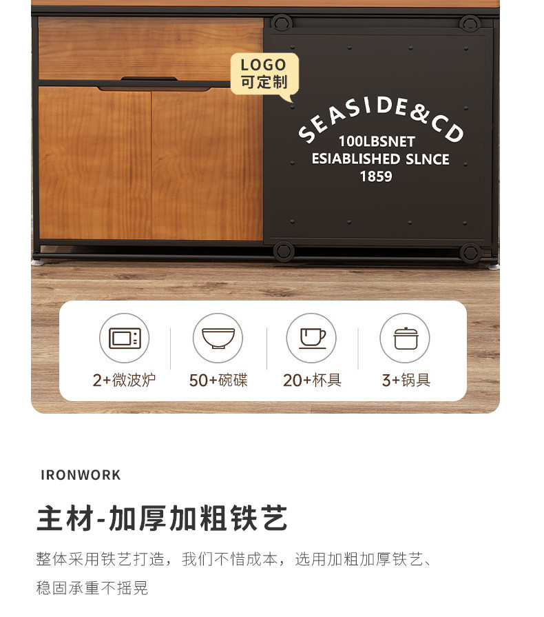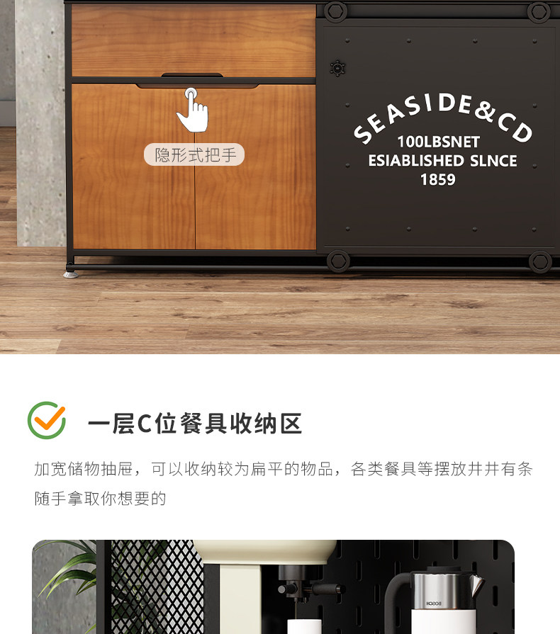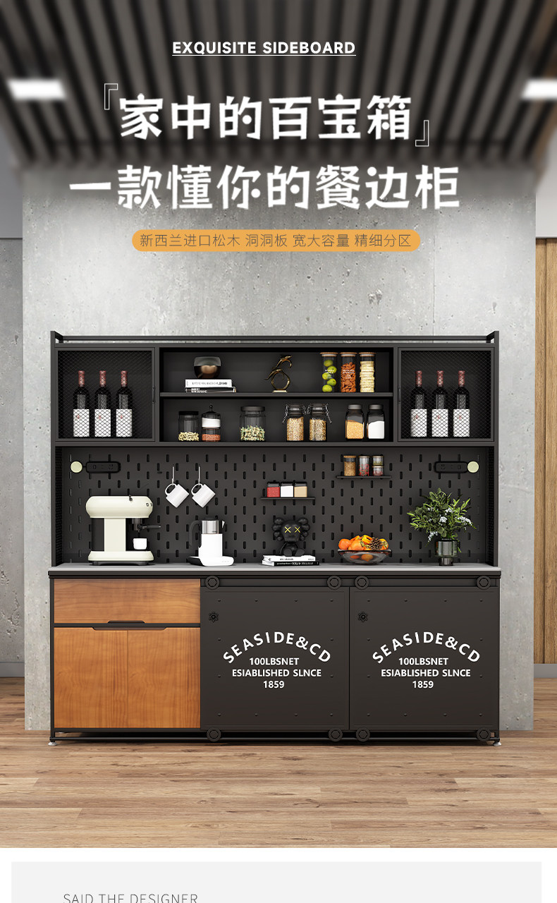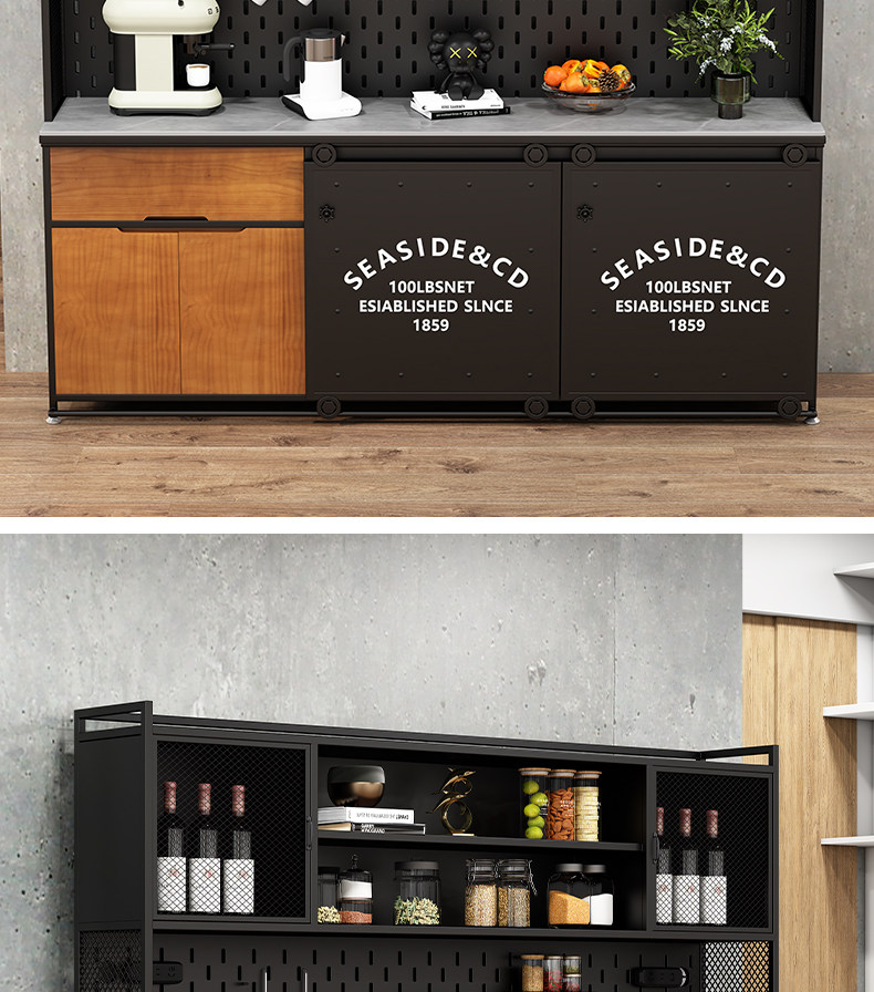 工业风餐边柜靠墙一体loft铁艺茶水柜客厅收纳柜储物柜边柜置物柜