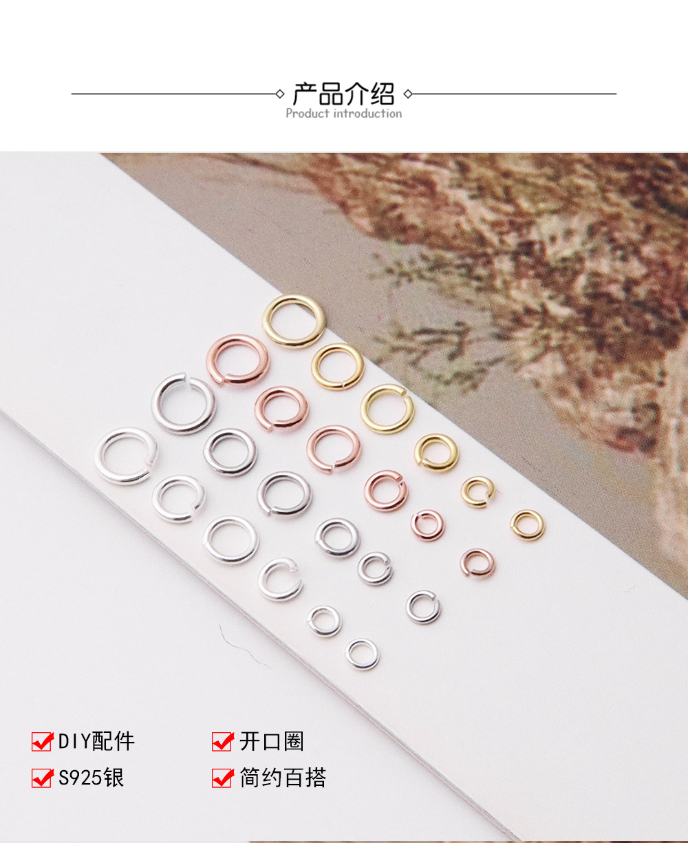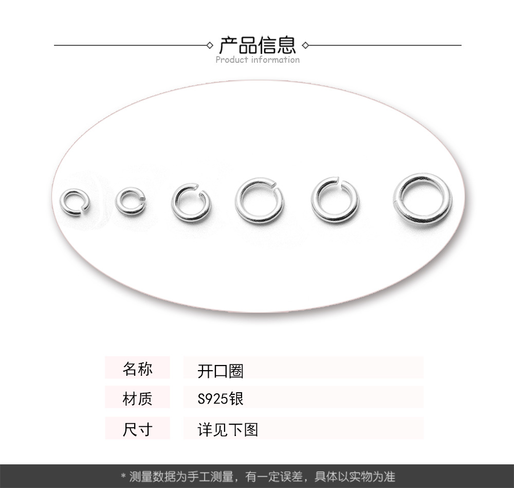S925纯银开口圈活口圈项链手链连接圈银环 手工DIY饰品耳环钩配件