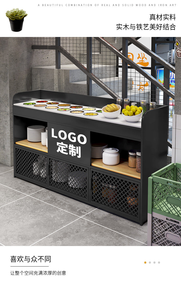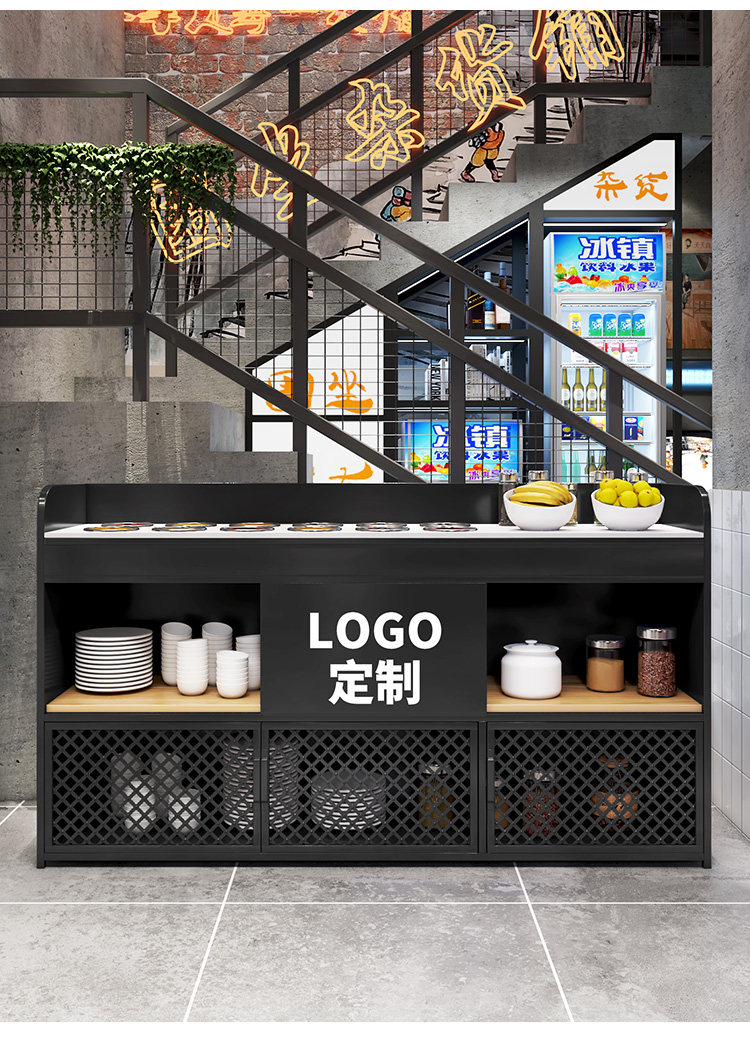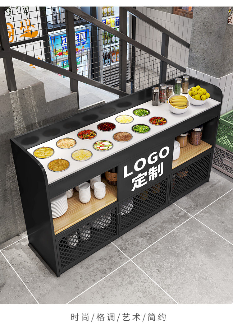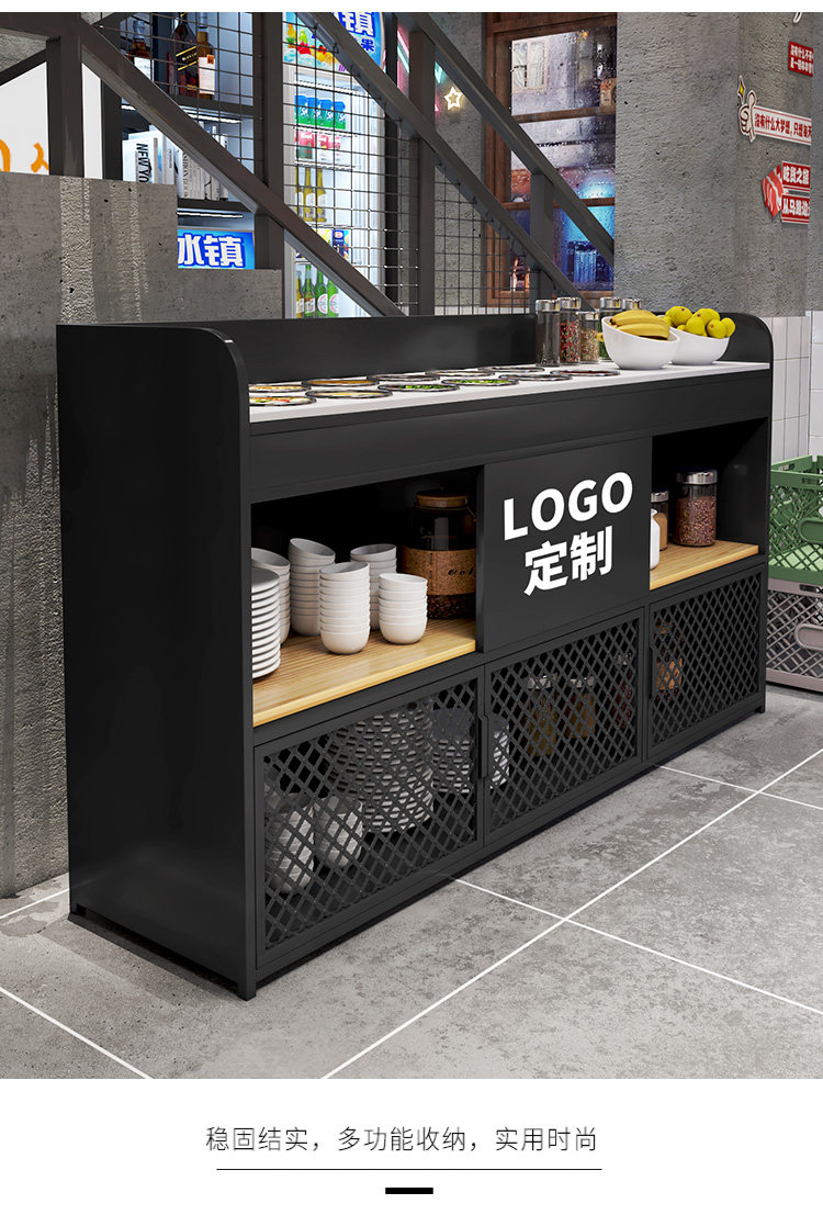 工业风实木火锅店调料台商用铁艺多层自助小料台大理石自助酱料台