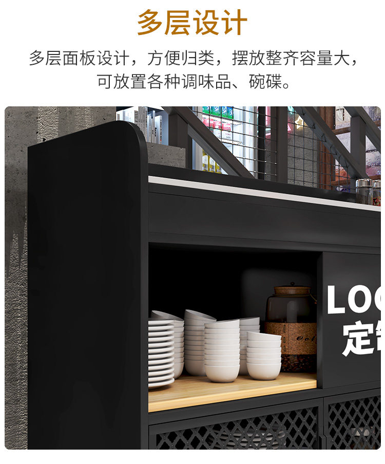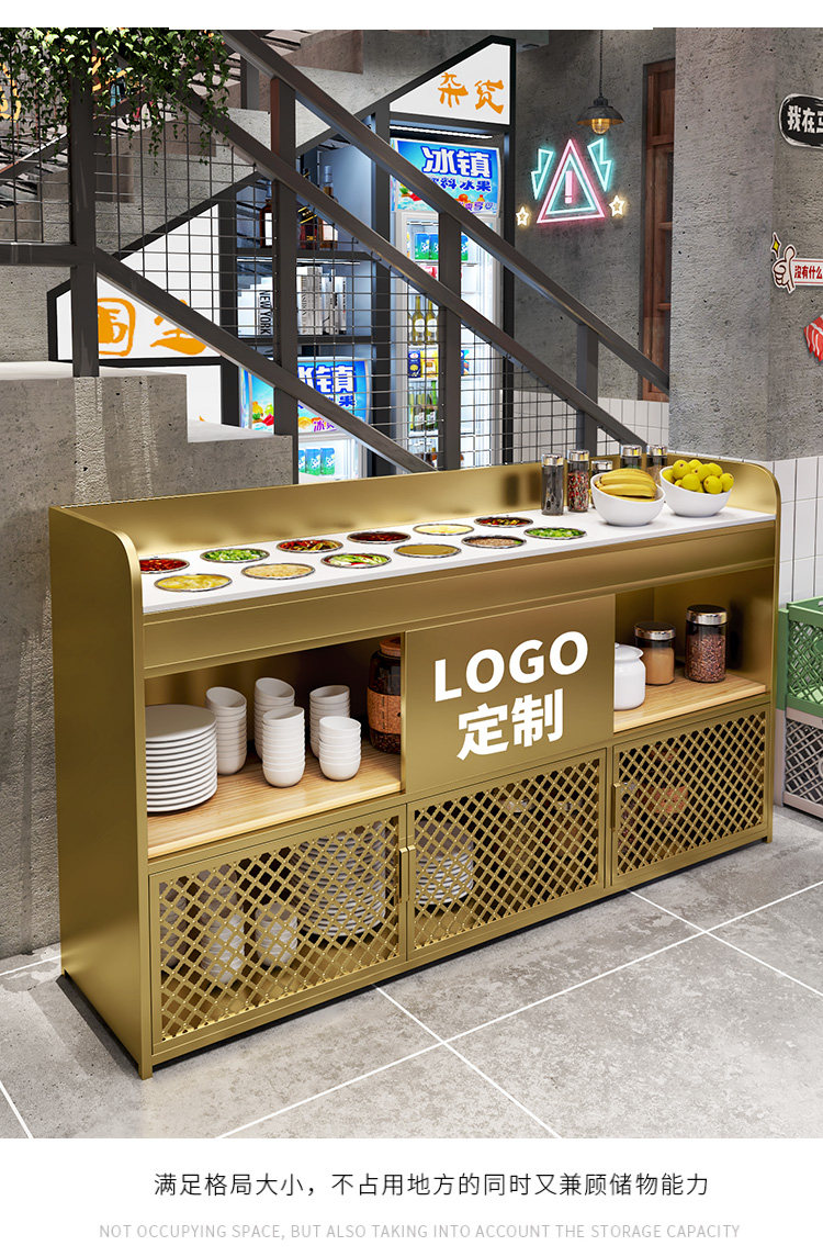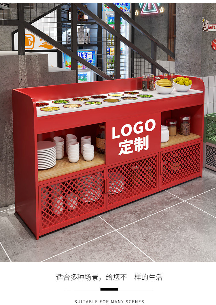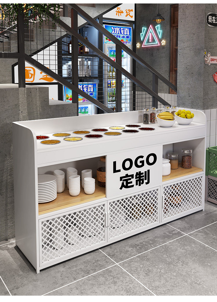 工业风实木火锅店调料台商用铁艺多层自助小料台大理石自助酱料台