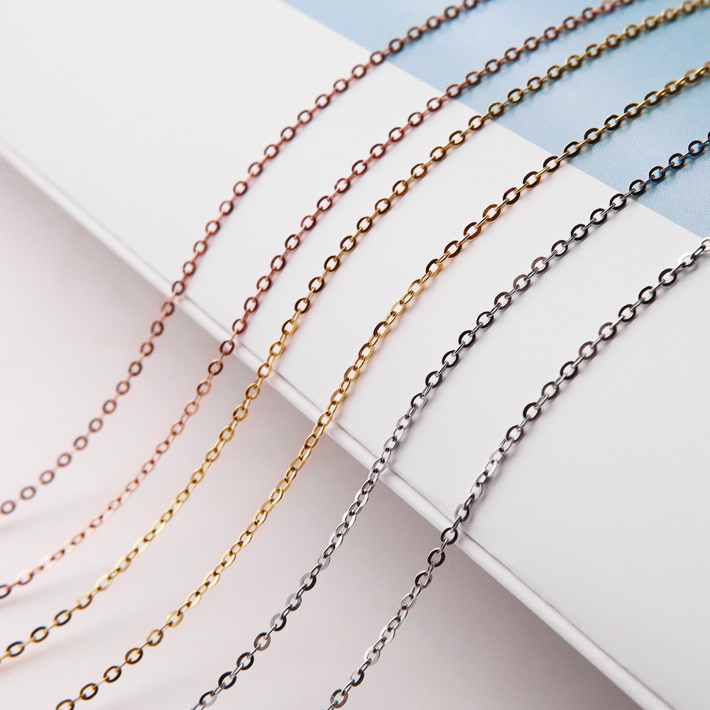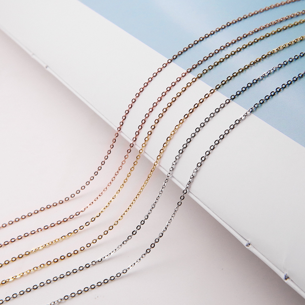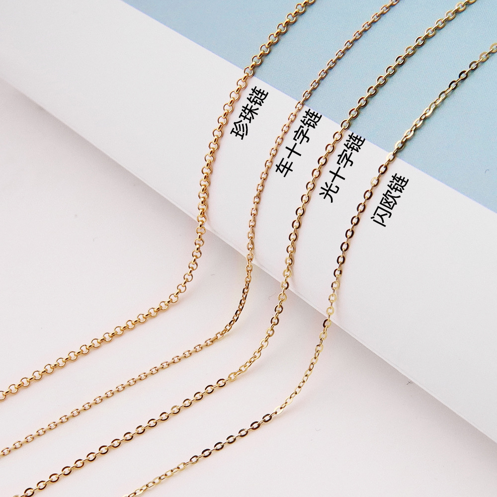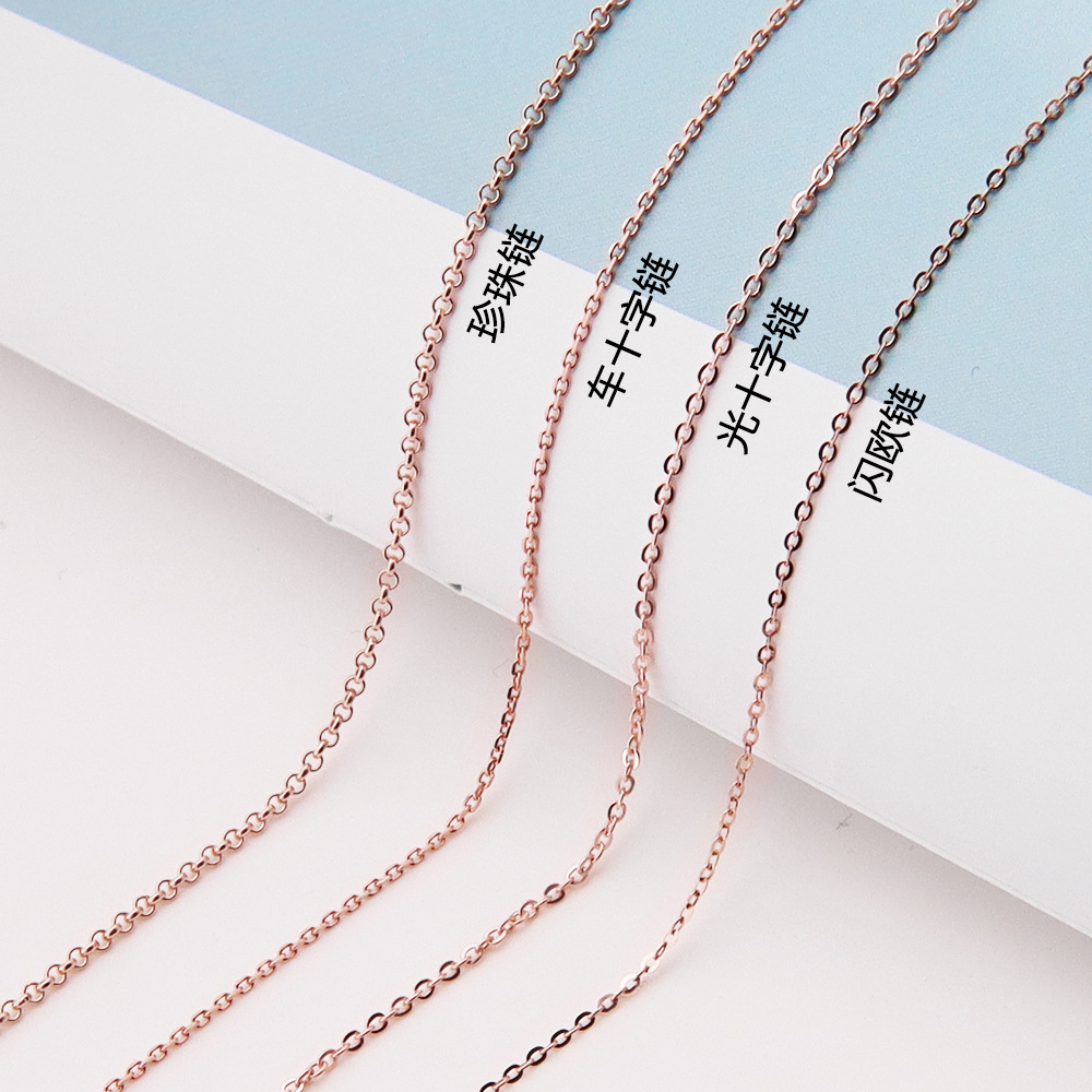 S925纯银闪欧项链 车光O十字锁骨链珍珠链无吊坠配链单链百搭高级