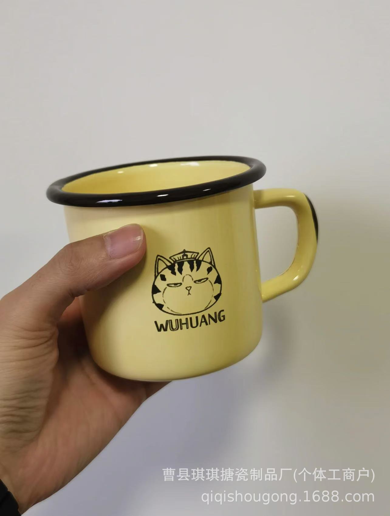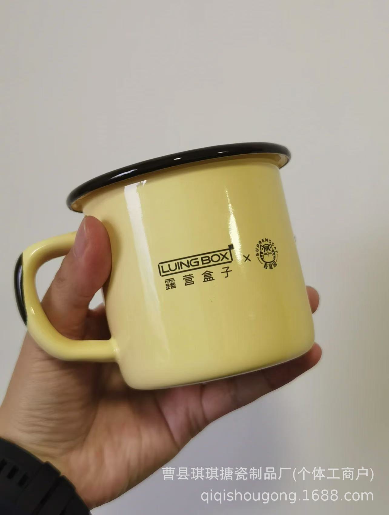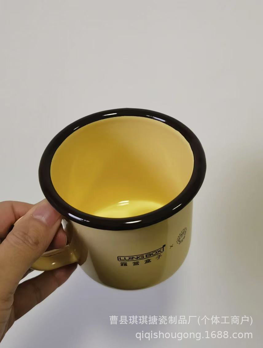 黄色猫头露营盒子&吾皇联名搪瓷水杯户外野餐马克杯搪瓷复古经典,批发价,价格:5.5,厂家直销,黄色猫头露营盒子&吾皇联名搪瓷水杯户外野餐马克杯搪瓷复古经典,免费拿样。