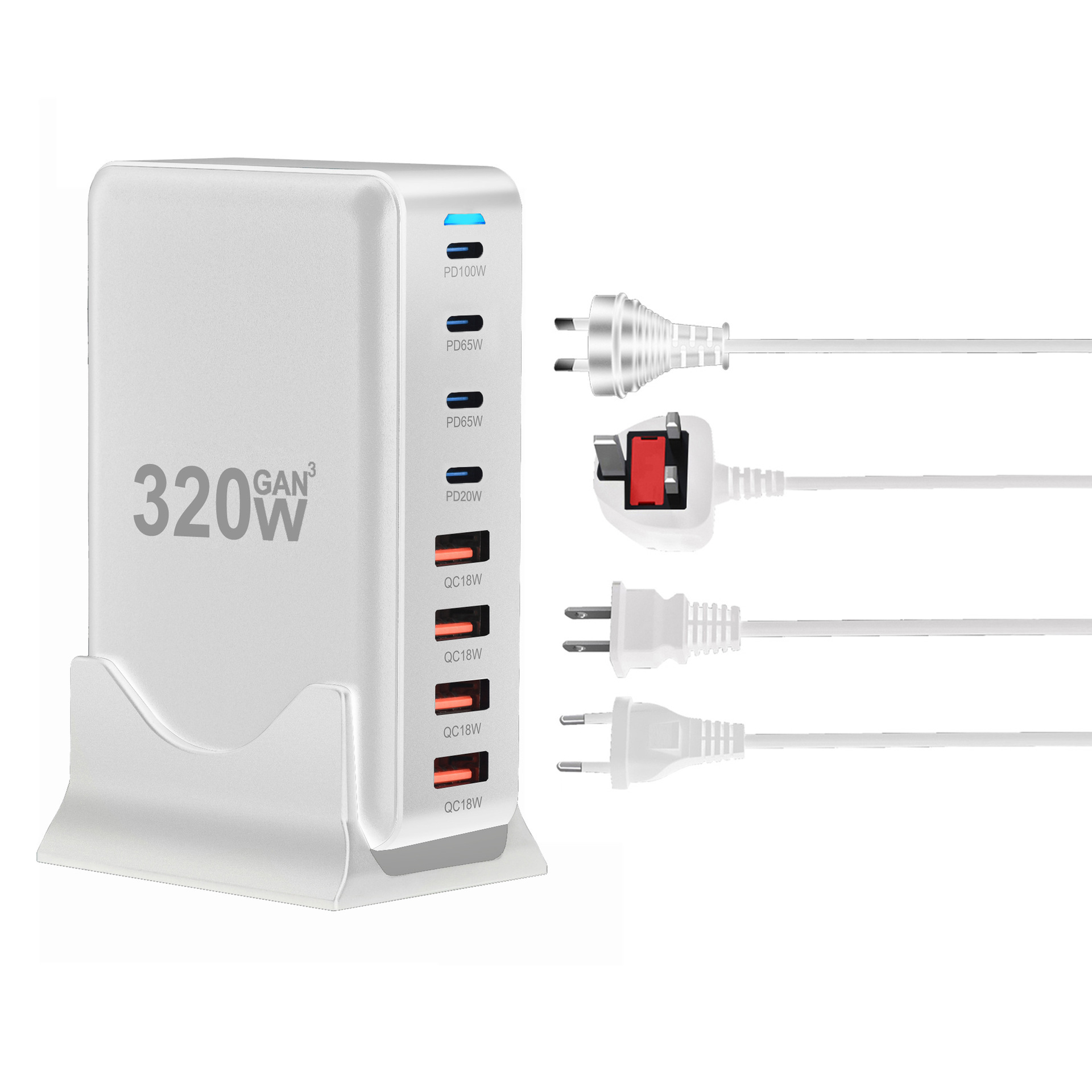 跨境320W氮化镓多口PD快充充电站适用于苹果笔记本充电器大功率