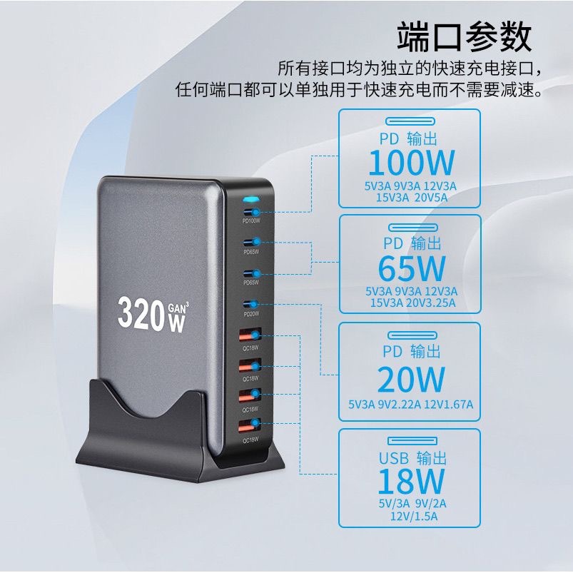 跨境320W氮化镓多口PD快充充电站适用于苹果笔记本充电器大功率,批发价,价格:50,厂家直销,跨境320W氮化镓多口PD快充充电站适用于苹果笔记本充电器大功率,免费拿样。