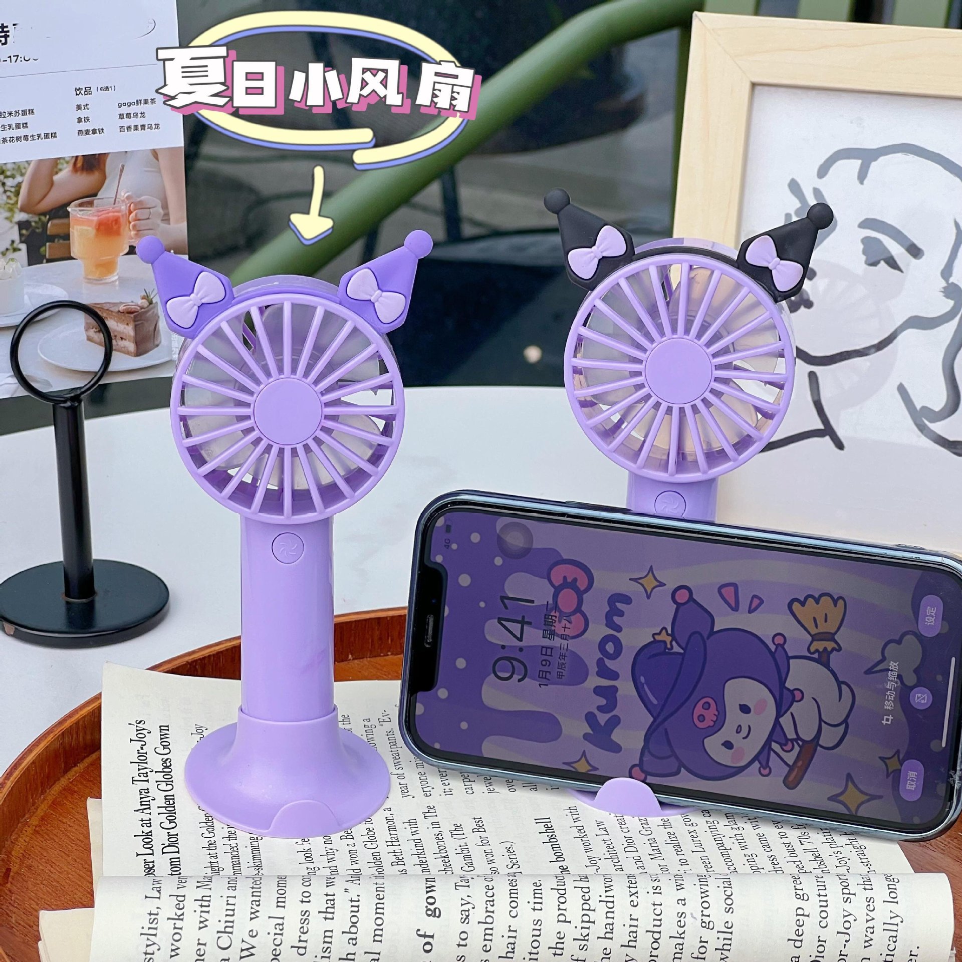 手机支架底座手持风扇usb充电迷你型桌面便携随身卡通可爱小风扇