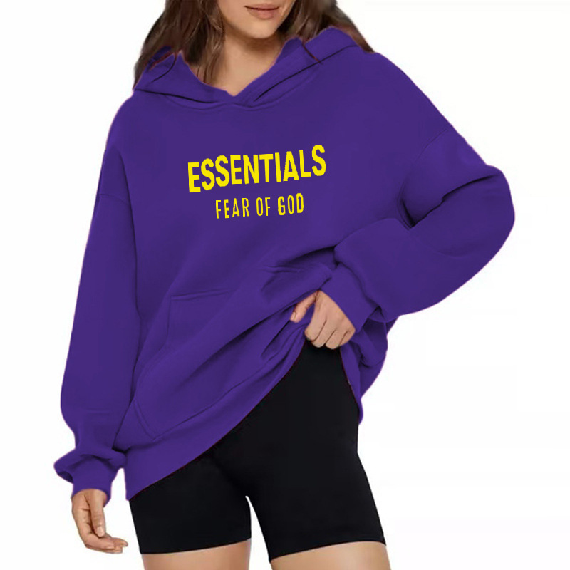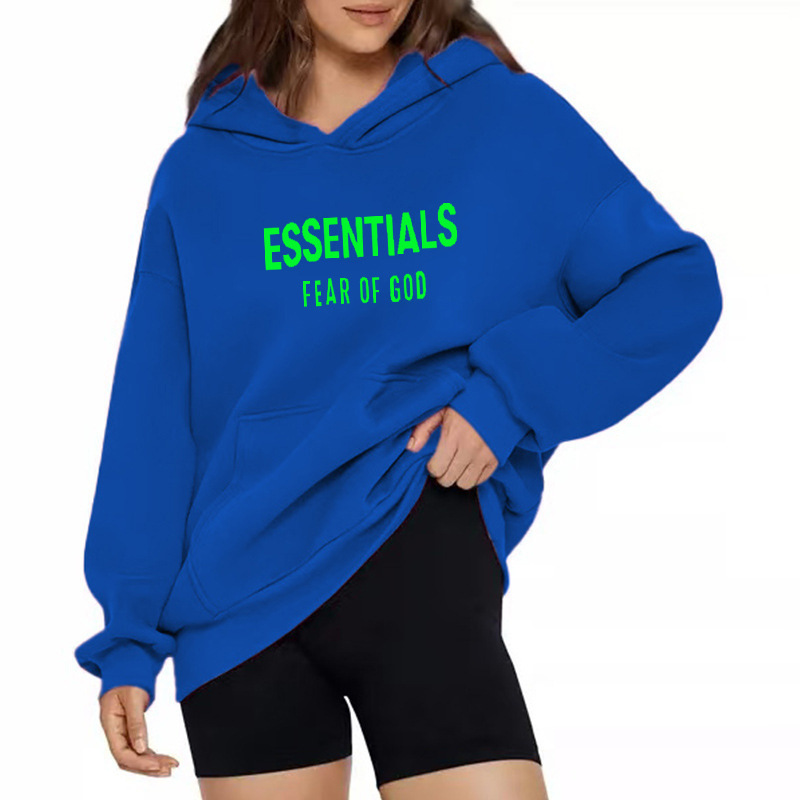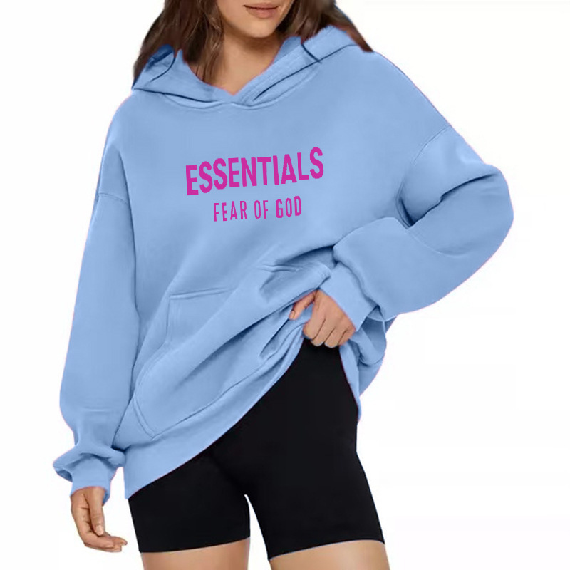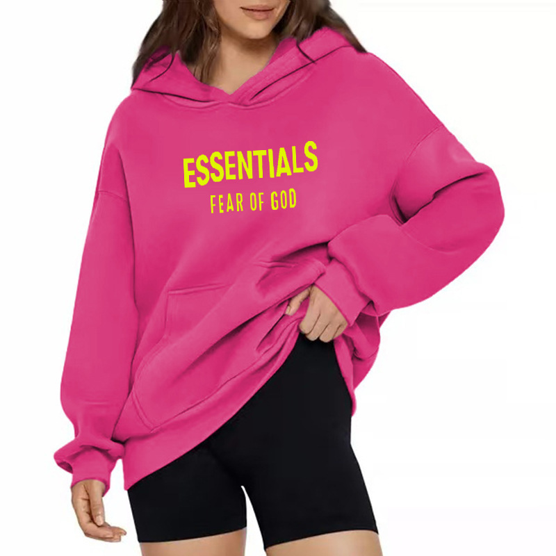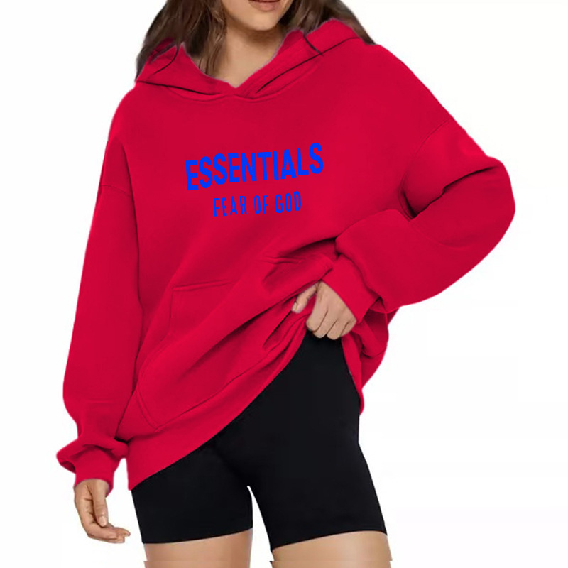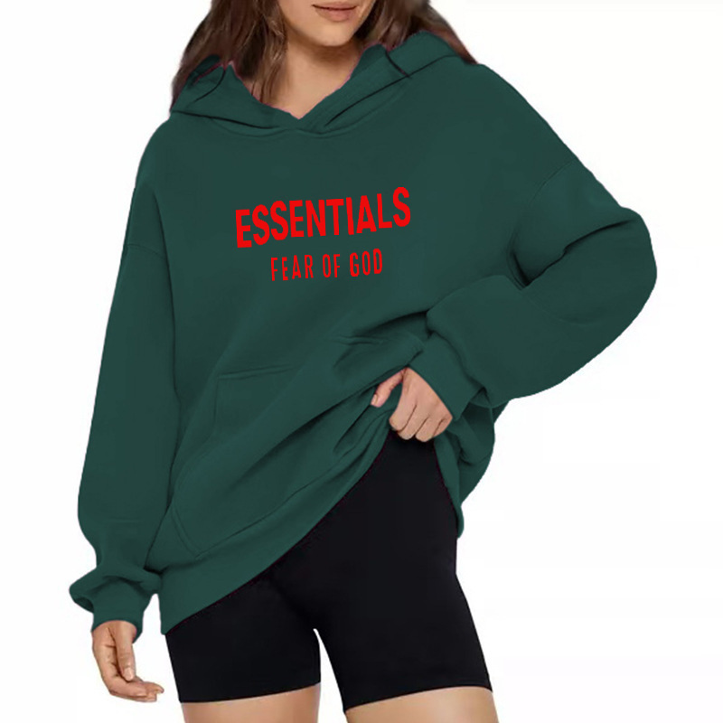 新款跨境男女款春秋季休闲嘻哈风连帽宽松版型口袋印花上衣
