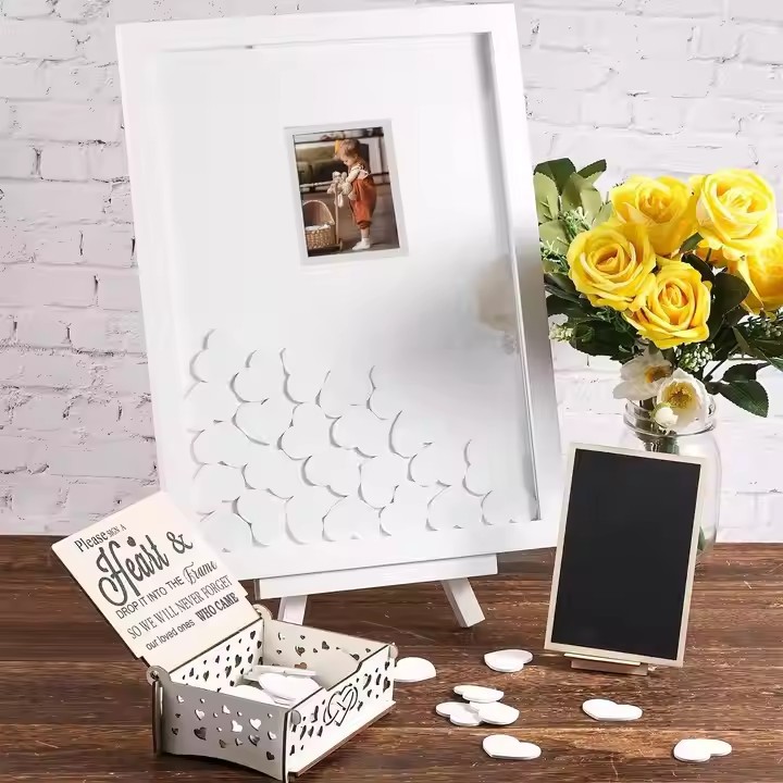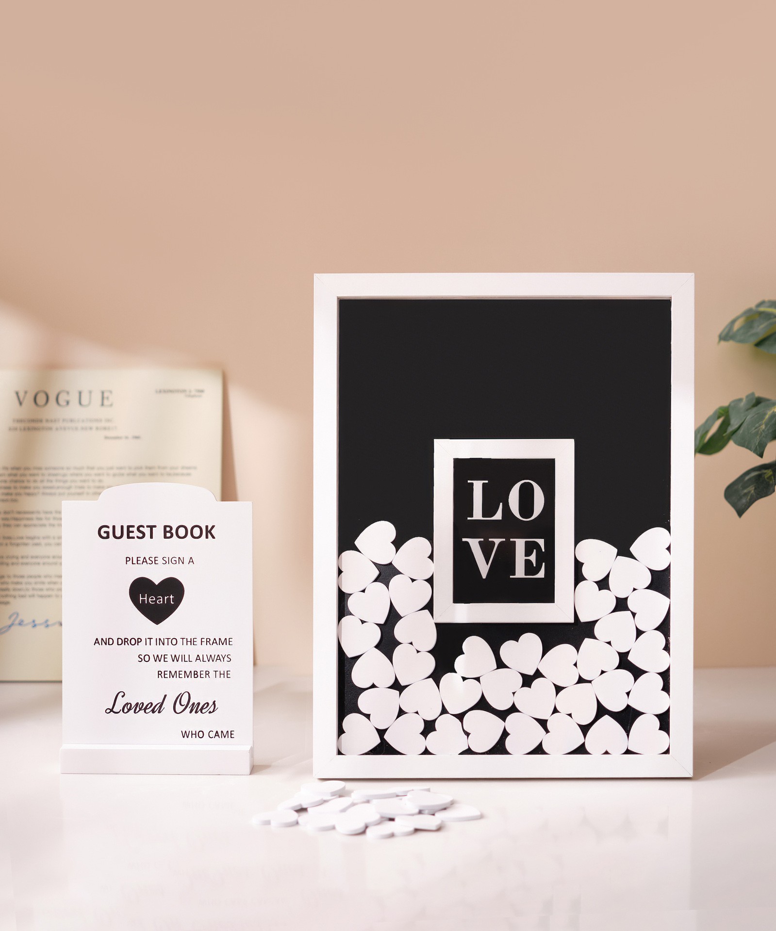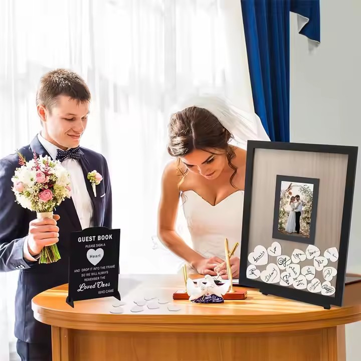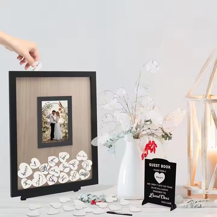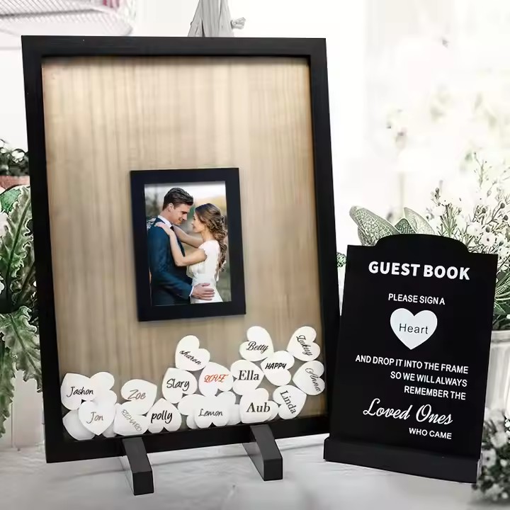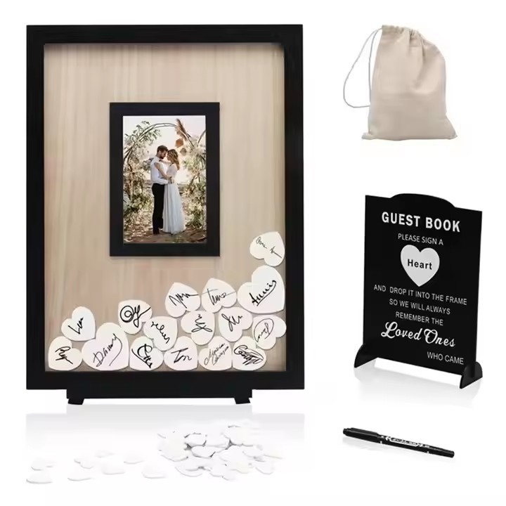 欧式婚礼签到台相框 黑色松木留言板 结婚签到板生日布置摆台配件