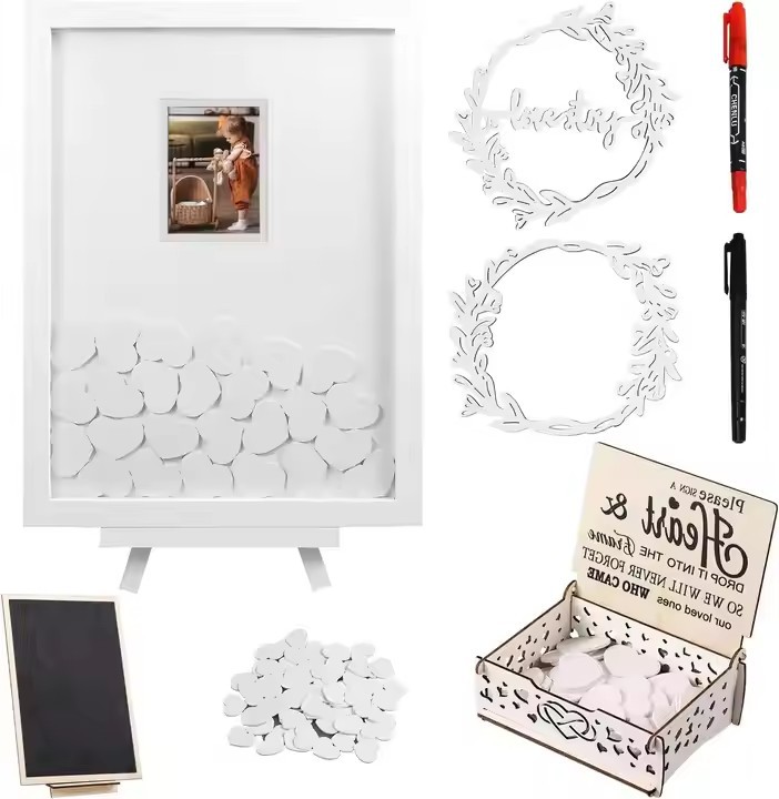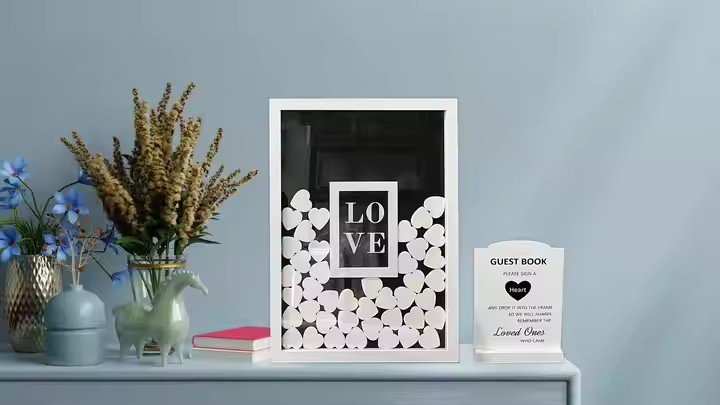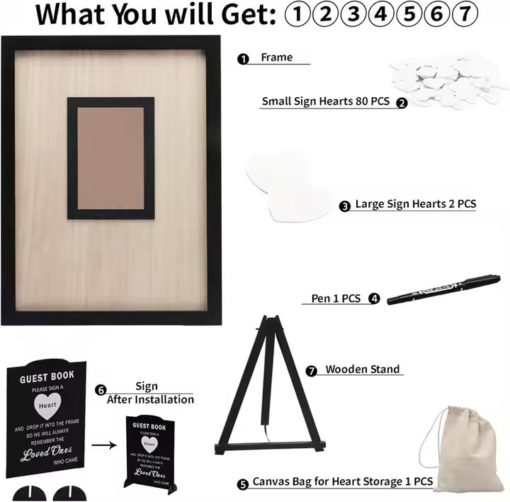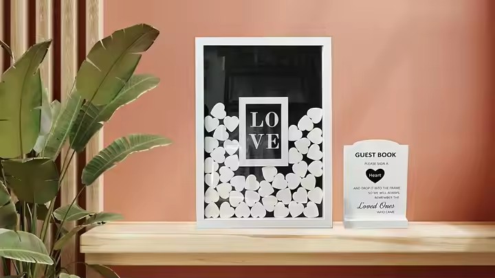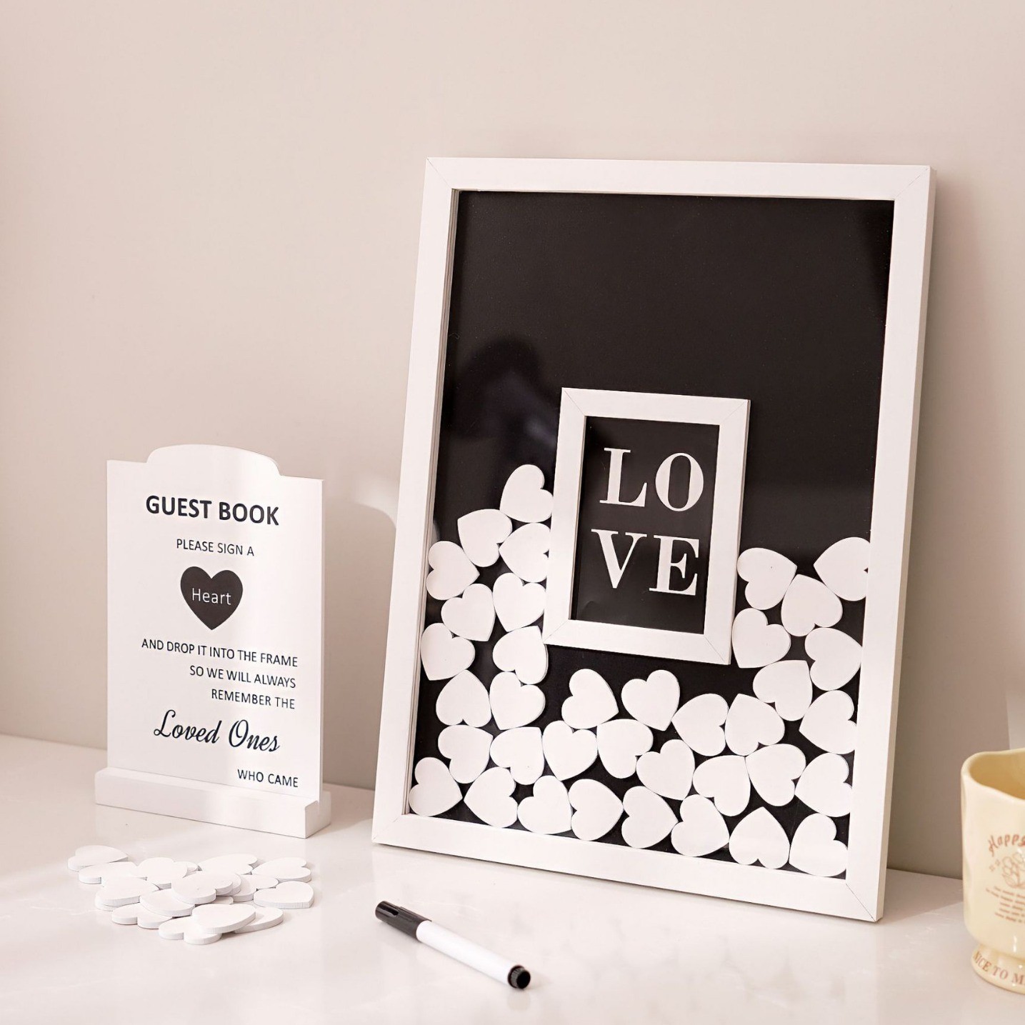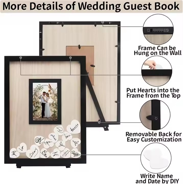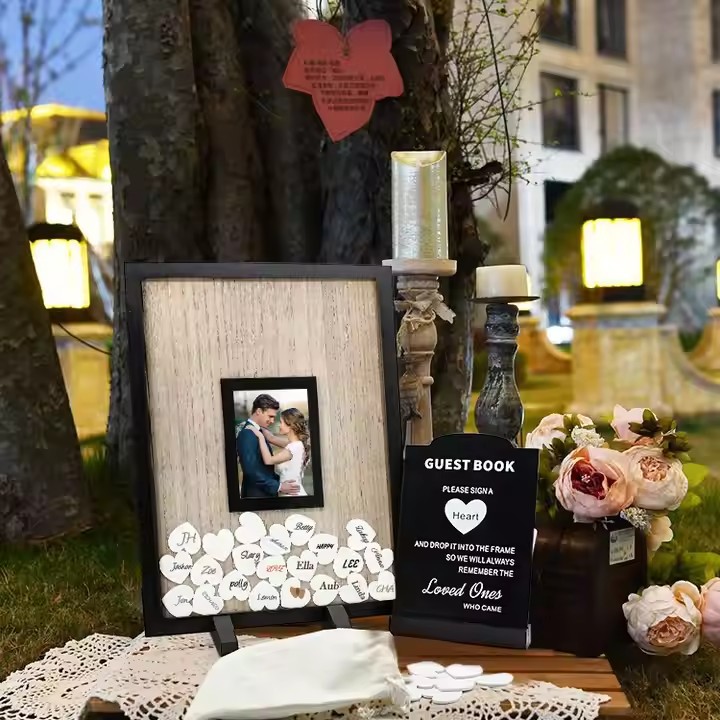 欧式婚礼签到台相框 黑色松木留言板 结婚签到板生日布置摆台配件