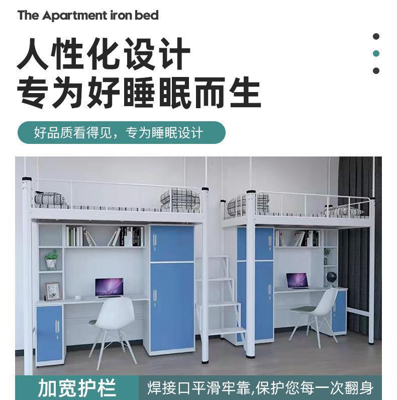 钢制公寓床大学生宿舍床上床下桌书柜组合一体床单双人高架铁艺床