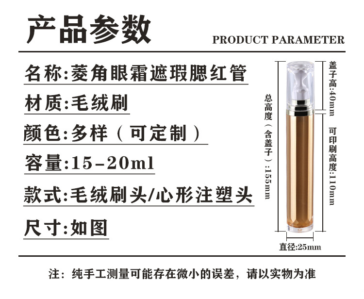 15g20ml按压粉底液管液体腮红遮瑕分装瓶 唇釉管 眼霜精华液