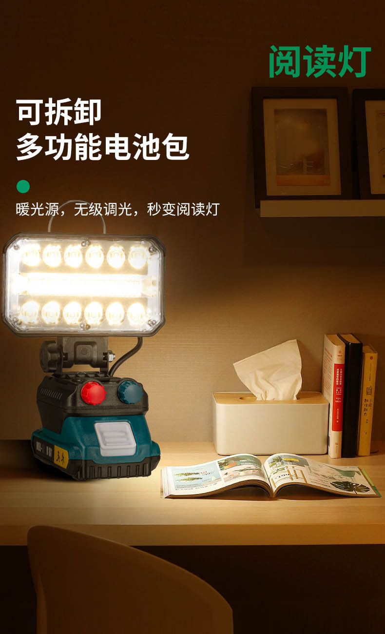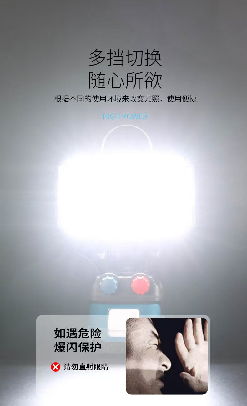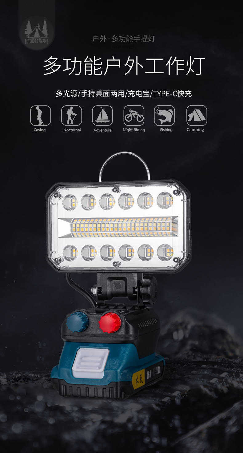 跨境新款超亮多功能投光灯庭院灯户外工地长续航电池检修工作灯