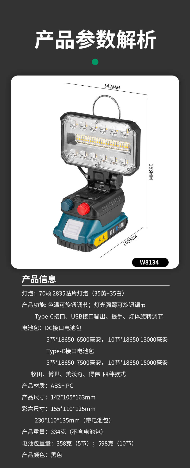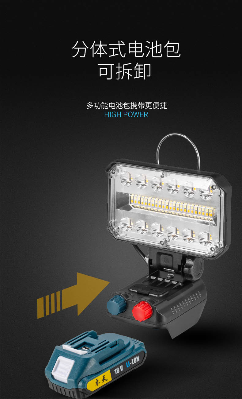 跨境新款超亮多功能投光灯庭院灯户外工地长续航电池检修工作灯,批发价,价格:41,厂家直销,跨境新款超亮多功能投光灯庭院灯户外工地长续航电池检修工作灯,免费拿样。