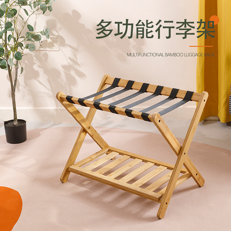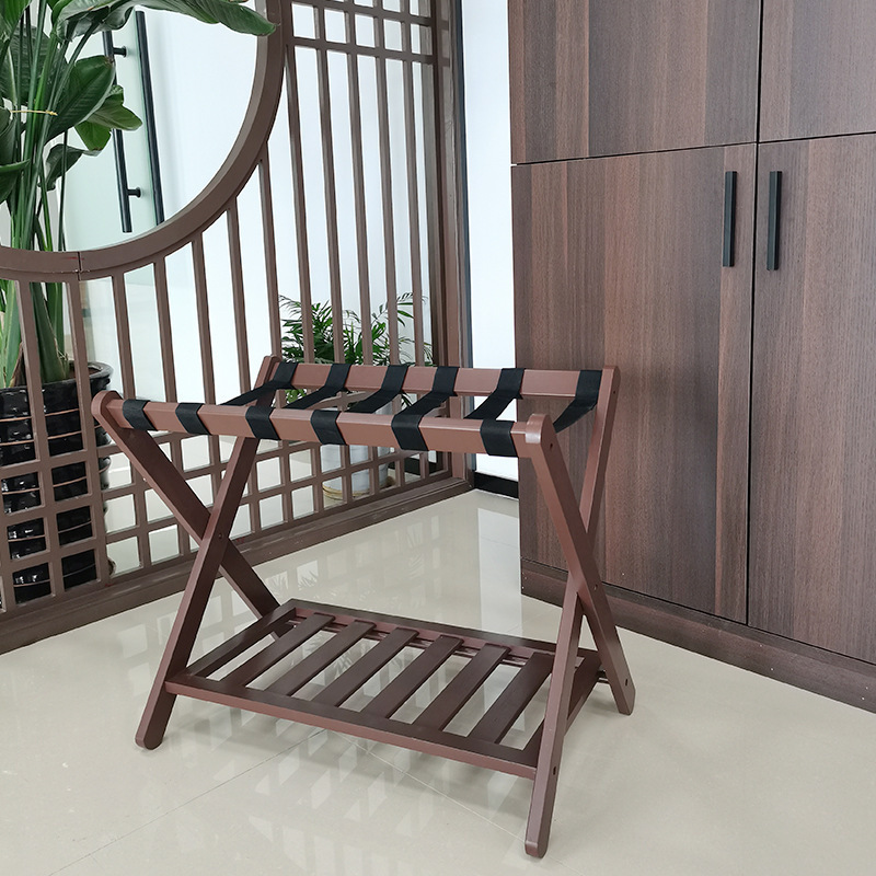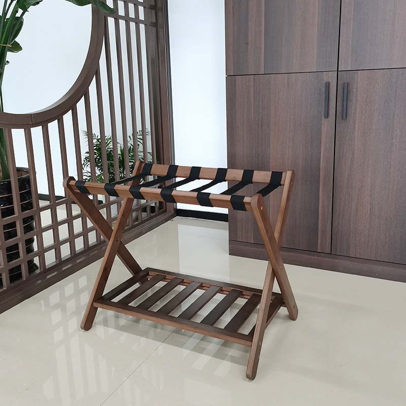 客房落地置物架酒店家具竹木行李架宾馆卧室放折叠家用收纳拖鞋